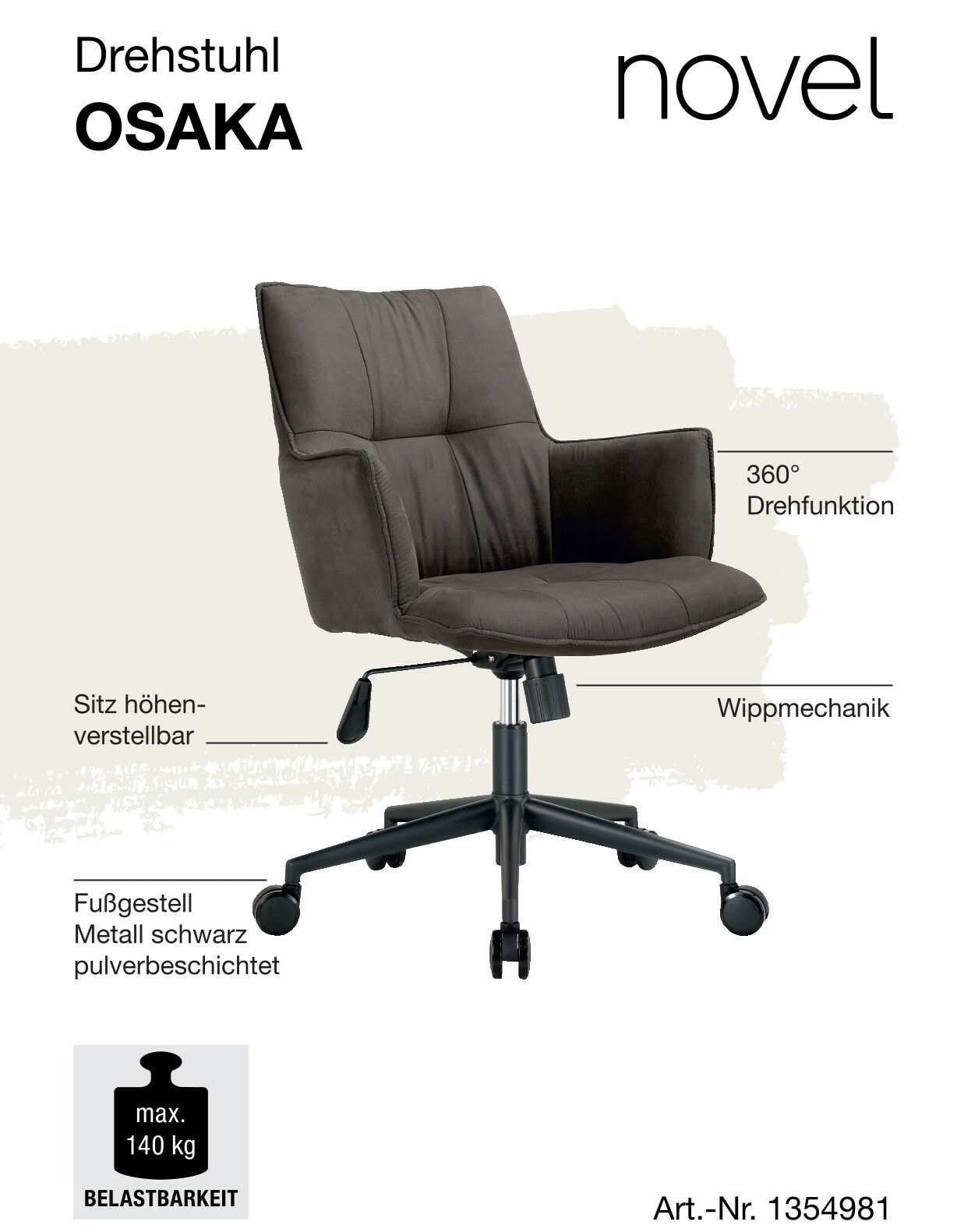 Der bequeme Drehsessel OSAKA wird mit Sicherheit auch in Ihrem Heim zum Ruhepol. Das Möbelstück besticht nicht nur dank seines modernen, trendigen Designs, sondern ist auch noch wunderbar gemütlich. Der Marken-Sessel von Novel hat die Farbe Dunkelgrau. Lassen Sie sich vom gleichermassen attraktiven wie gemütlichen Überzug aus Stoff sowie Mikrofaser begeistern. Das Modell OSAKA überzeugt mit einem Gestell aus Metall. Es steht sicher auf ästhetischen Füssen. Der Sessel nimmt 59 x 93,5 x 63 Zentimeter ein und lädt mit der Sitztiefe von 45 Zentimetern zum Relaxen ein. Das Modell OSAKA ist für ein Gewicht von 140 Kilogramm ausgelegt und verfügt über ein Gewicht von insgesamt 10,2 Kilogramm. Mit diesem Möbelstück finden Sie jederzeit Entspannung.