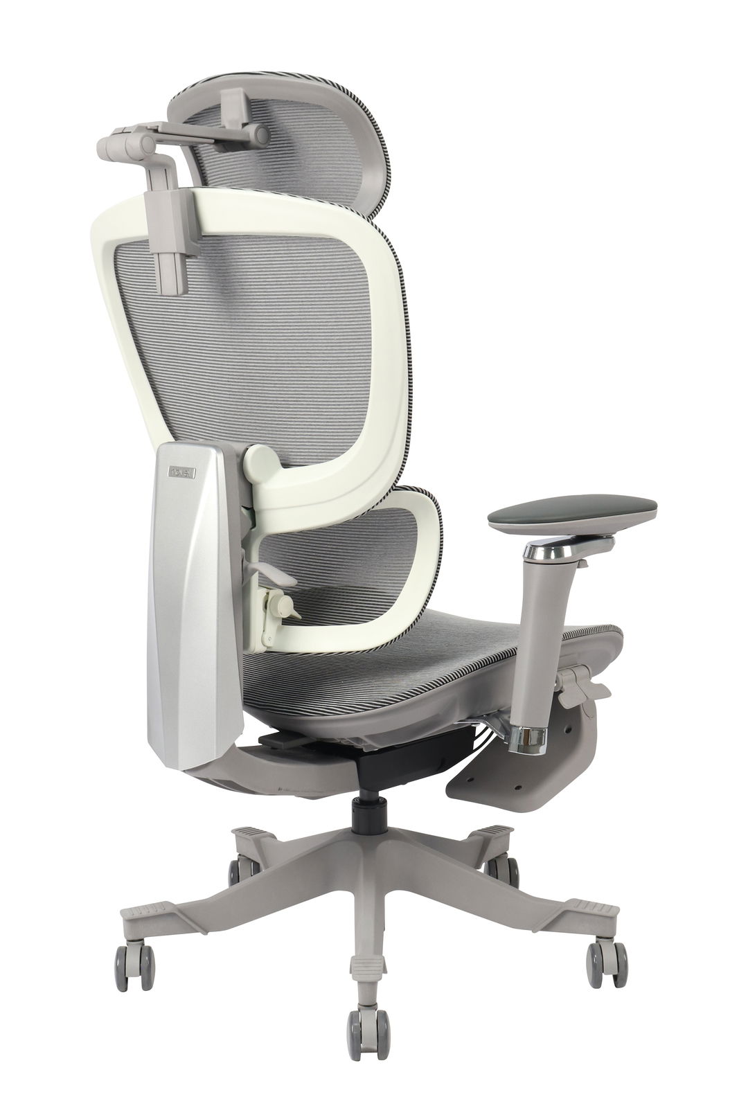 Erleben Sie Komfort und Stil mit dem Novel Drehstuhl DOMINIC, der durch sein modernes Design und seine trendigen Materialien besticht. Die Sitzfläche und der Rücken bestehen aus hochwertigem Netz Mesh in Schwarz, das für ein angenehmes Sitzgefühl sorgt. Die hellgraue Hauptfarbe des Stuhls fügt sich nahtlos in jedes moderne Büroambiente ein, während das graue Gestell das elegante Erscheinungsbild unterstreicht. Die Drehfunktion und die Höhenverstellbarkeit bieten Flexibilität und Anpassungsfähigkeit an individuelle Bedürfnisse. Mit einer Sitzbreite von 51,5 cm und einer Belastbarkeit von bis zu 140 kg ist dieser Stuhl sowohl robust als auch komfortabel.