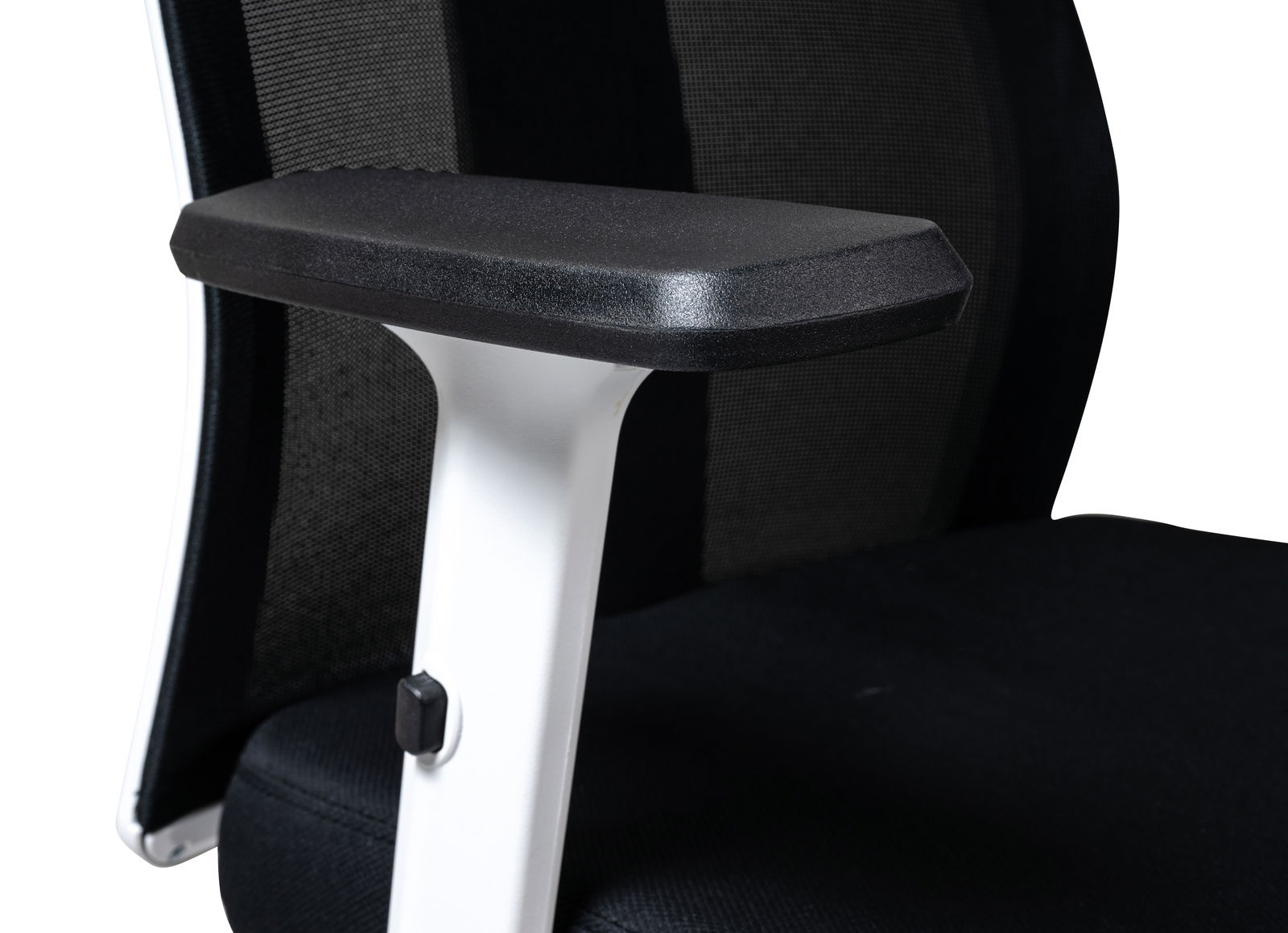 Der Novel Drehstuhl MALU ist die perfekte Ergänzung für jedes moderne Büro oder Home-Office. Mit seinem stilvollen Design in Weiss und Schwarz fügt sich dieser Drehstuhl nahtlos in jedes trendige Ambiente ein. Der Bezug aus hochwertigem Stoff und der Rücken aus atmungsaktivem Mesh-Netz bieten optimalen Komfort und Unterstützung. Die Abmessungen von 125 cm Höhe, 60 cm Tiefe und 65 cm Breite sorgen für eine ergonomische Sitzposition, während die Sitzbreite von 50 cm ausreichend Platz bietet. Der Drehstuhl ist höhenverstellbar und mit einem stabilen, weissen Gestell ausgestattet, das ihn nicht nur funktional, sondern auch optisch ansprechend macht.