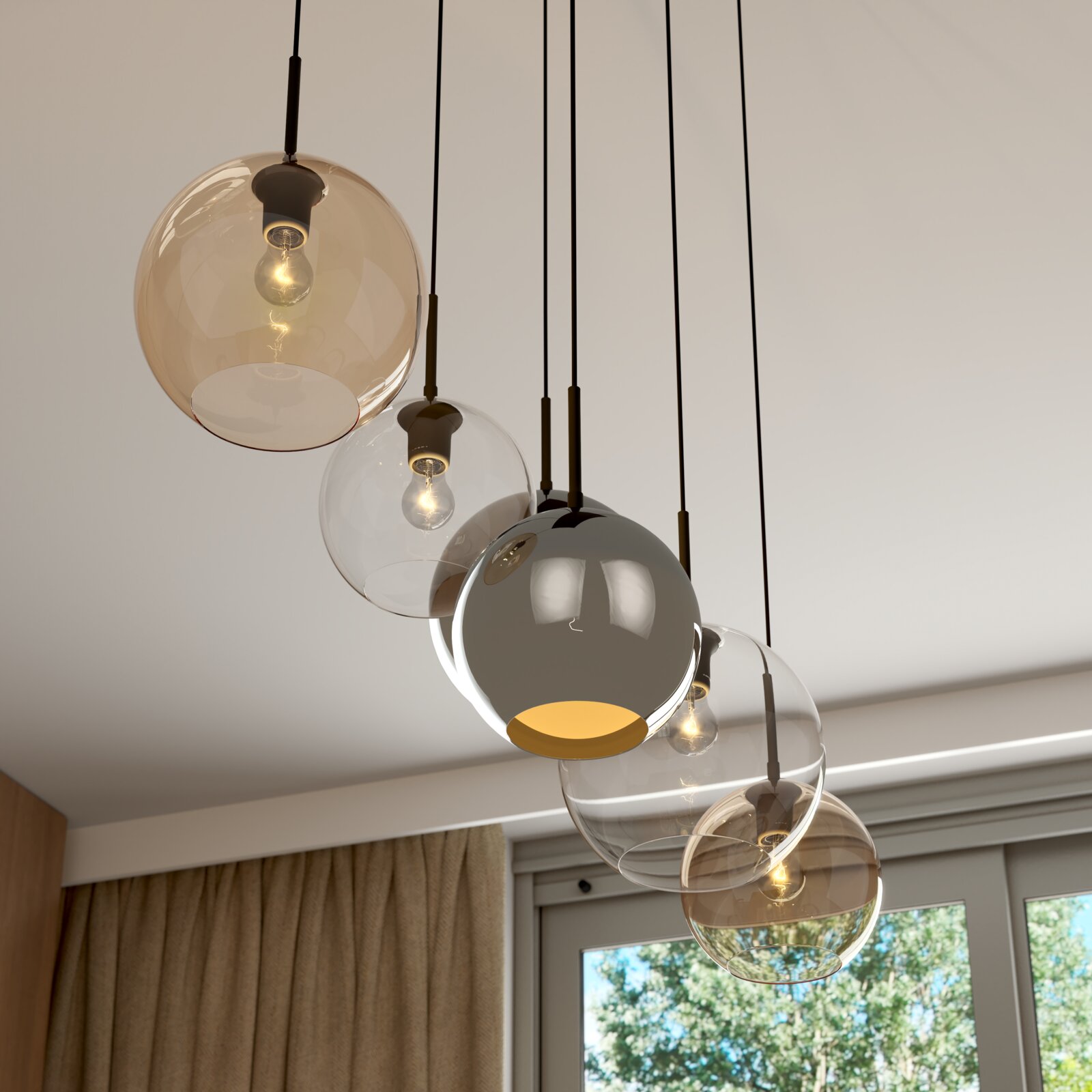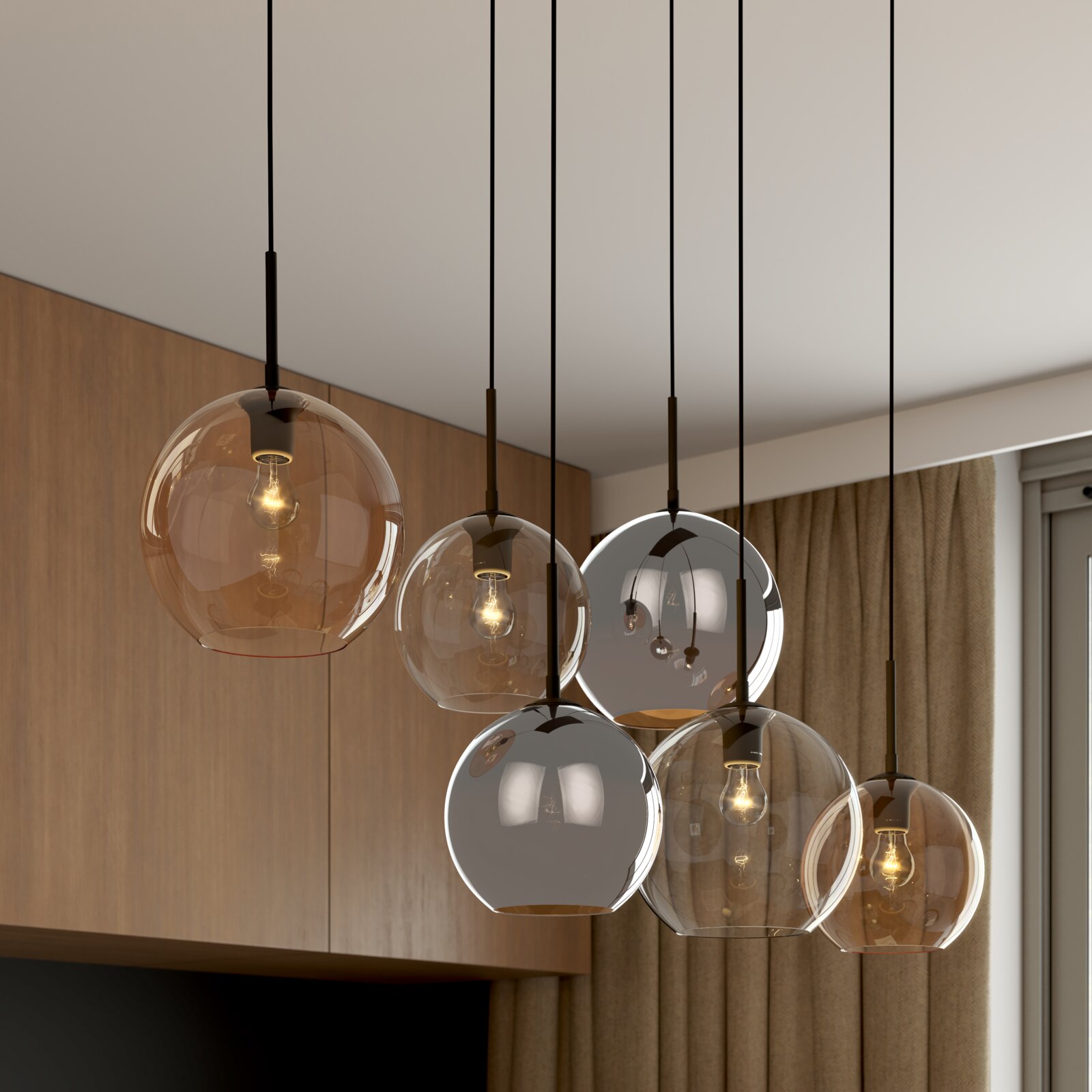 Die Novel Hängeleuchte bringt mit ihrem eleganten Design und der lebendigen Multicolour-Optik frischen Wind in jeden Raum. Hergestellt aus hochwertigem Glas, überzeugt diese Hängeleuchte nicht nur durch ihre ästhetische Anmutung, sondern auch durch ihre Funktionalität. Sie ist für den Netzbetrieb ausgelegt und lässt sich in verschiedenen Räumen stilvoll integrieren. Obwohl sie ohne Leuchtmittel geliefert wird, haben Sie die Möglichkeit, sechs E27-Glühbirnen mit einer Leistung von je 60W zu nutzen. Die Leuchtmittel sind problemlos austauschbar, sodass Sie jederzeit die Lichtstimmung Ihren Wünschen anpassen können.