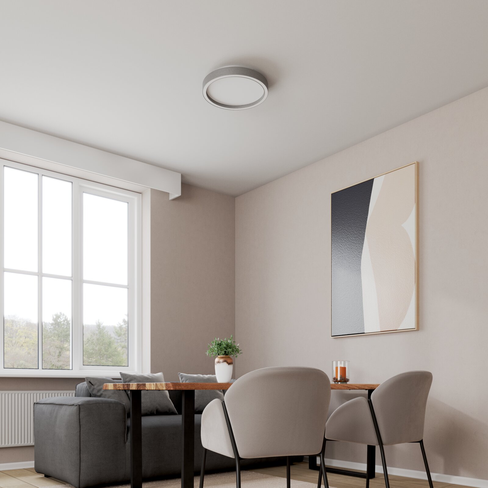 Erleben Sie die perfekte Mischung aus modernem Design und effizienter Beleuchtung mit der Novel LED-Deckenleuchte. Diese stilvolle Leuchte in der Hauptfarbe Alu bringt mit ihrer warmweißen Lichtfarbe eine angenehme und gemütliche Atmosphäre in jeden Raum. Mit einer Farbtemperatur von 3000K sorgt sie für ein sanftes, einladendes Licht. Gefertigt aus hochwertigem Aluminium, vereint die Leuchte Robustheit und Eleganz. Mit einer Lichtleistung von 1140 Lumen, die durch die Abdeckung gleichmäßig verteilt wird, garantiert sie optimale Ausleuchtung. Das LED-Leuchtmittel ist bereits enthalten und bietet eine langlebige sowie energieeffiziente Lösung.