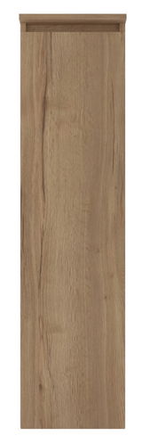 Der Novel Mittelschrank links NV.210 präsentiert sich in einem modernen und trendigen Design, das sich perfekt in jedes zeitgemäße Interieur einfügt. Die warme Eichenfarbe von Front, Korpus und Hauptfarbe verleiht dem Raum eine natürliche Eleganz und harmoniert wunderbar mit verschiedenen Einrichtungsstilen. Der grifflos gestaltete Schrank bietet eine glatte und nahtlose Optik, die ein minimalistisches Ambiente unterstützt. Die Drehtür des Schranks sorgt für eine einfache Handhabung und bietet Zugang zu großzügigem Stauraum. Hergestellt aus hochwertiger Holznachbildung, verbindet dieser Schrank stilvolle Ästhetik mit Funktionalität und Langlebigkeit.