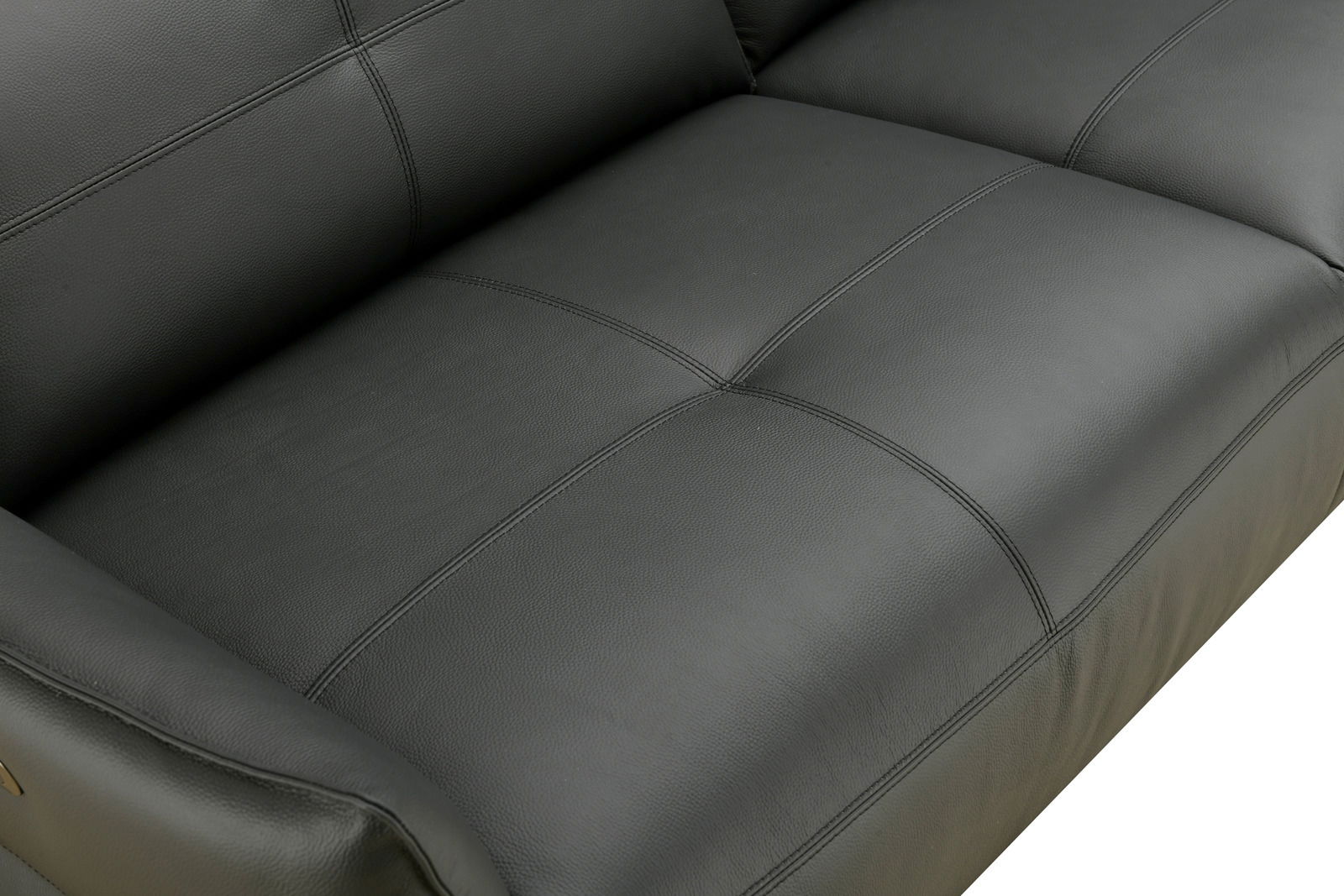 Erleben Sie mit der Novel Polstergarnitur Ariane ein einzigartiges Design, das moderne Ästhetik und höchsten Komfort in Ihrem Wohnraum vereint. Der schwarze Lederbezug verleiht der Garnitur eine zeitlose Eleganz, die durch die robusten Metallfüße zusätzlich unterstrichen wird. Die großzügigen Maße der Sofas - ein 3-Sitzer mit den Abmessungen 220x98x101 cm und ein 2-Sitzer mit 191x98x101 cm - bieten ausreichend Platz für entspannte Stunden. Mit einer Sitzhöhe von 46 cm und einer Sitztiefe von 60 cm ist optimaler Sitzkomfort garantiert. Die hohe Belastbarkeit von 480 kg sorgt für Stabilität und Langlebigkeit.