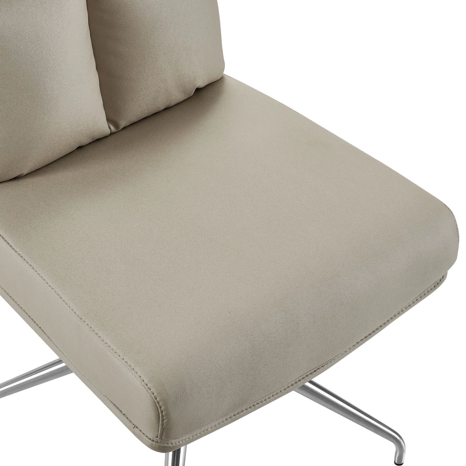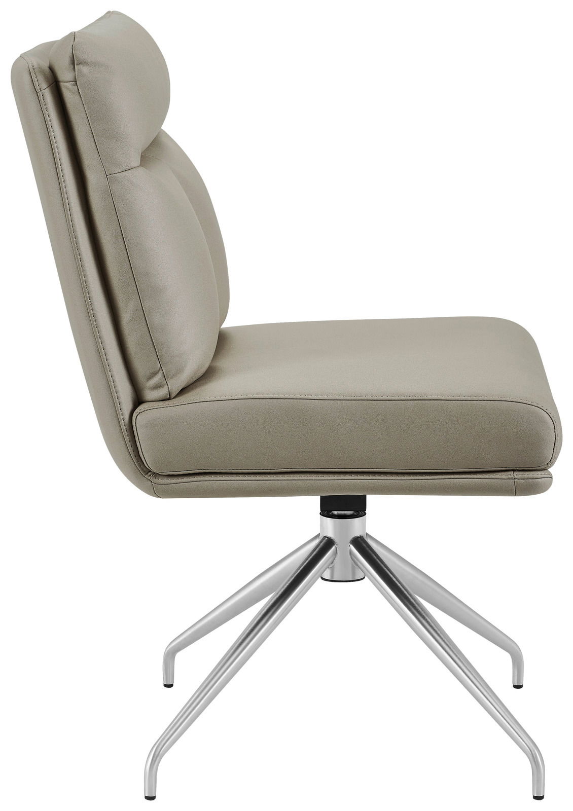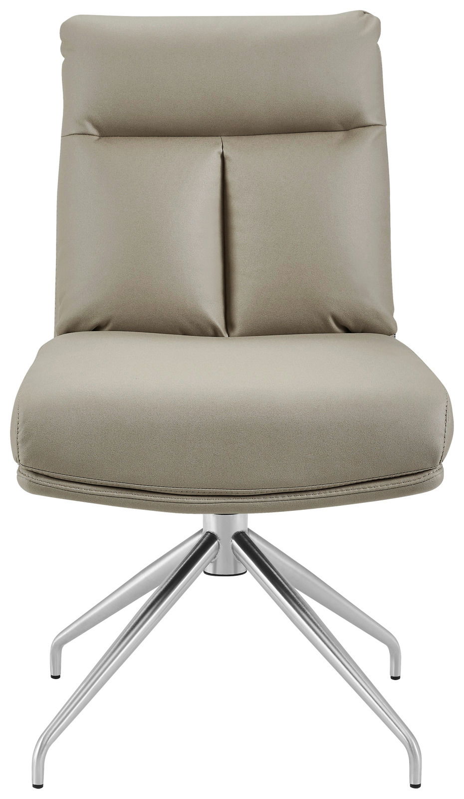 Der Novel Stuhl EMMA vereint modernes Design mit hoher Funktionalität und bietet einen stilvollen Akzent für jedes Interieur. Der Bezug aus Stoff Vega in elegantem Taupe harmoniert perfekt mit dem gebürsteten Edelstahlgestell und verleiht dem Stuhl eine edle Erscheinung. Mit einer Sitzhöhe von 50,5 cm und einer Sitztiefe von 43,5 cm bietet der Stuhl optimalen Komfort, während die Sitzbreite von 46 cm ausreichend Platz für entspanntes Sitzen ermöglicht. Das drehbare Design sorgt für Flexibilität und Anpassungsfähigkeit in verschiedenen Räumen. Die hochwertige Microfaser mit 20.000 Scheuertouren garantiert Langlebigkeit und Widerstandsfähigkeit.