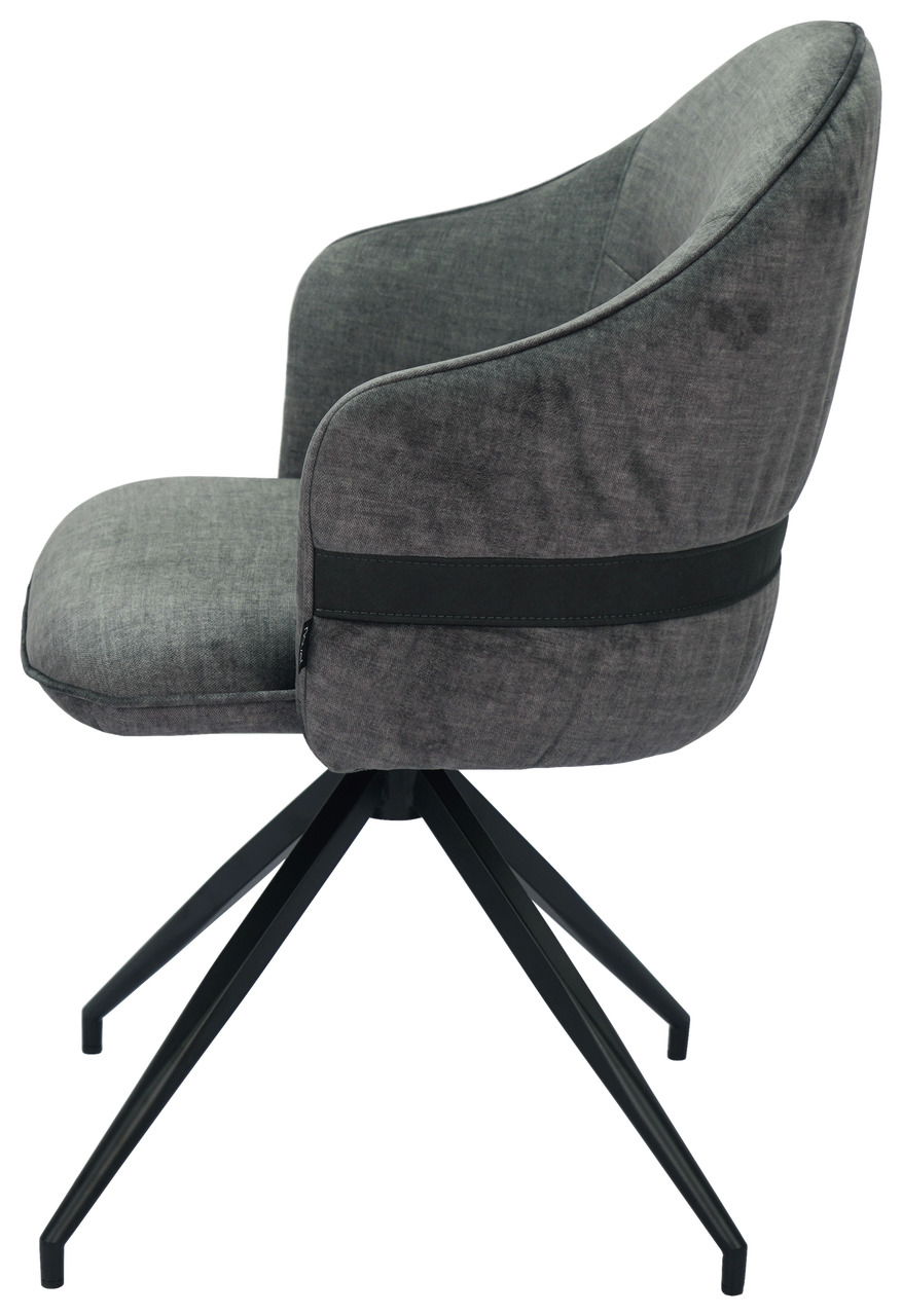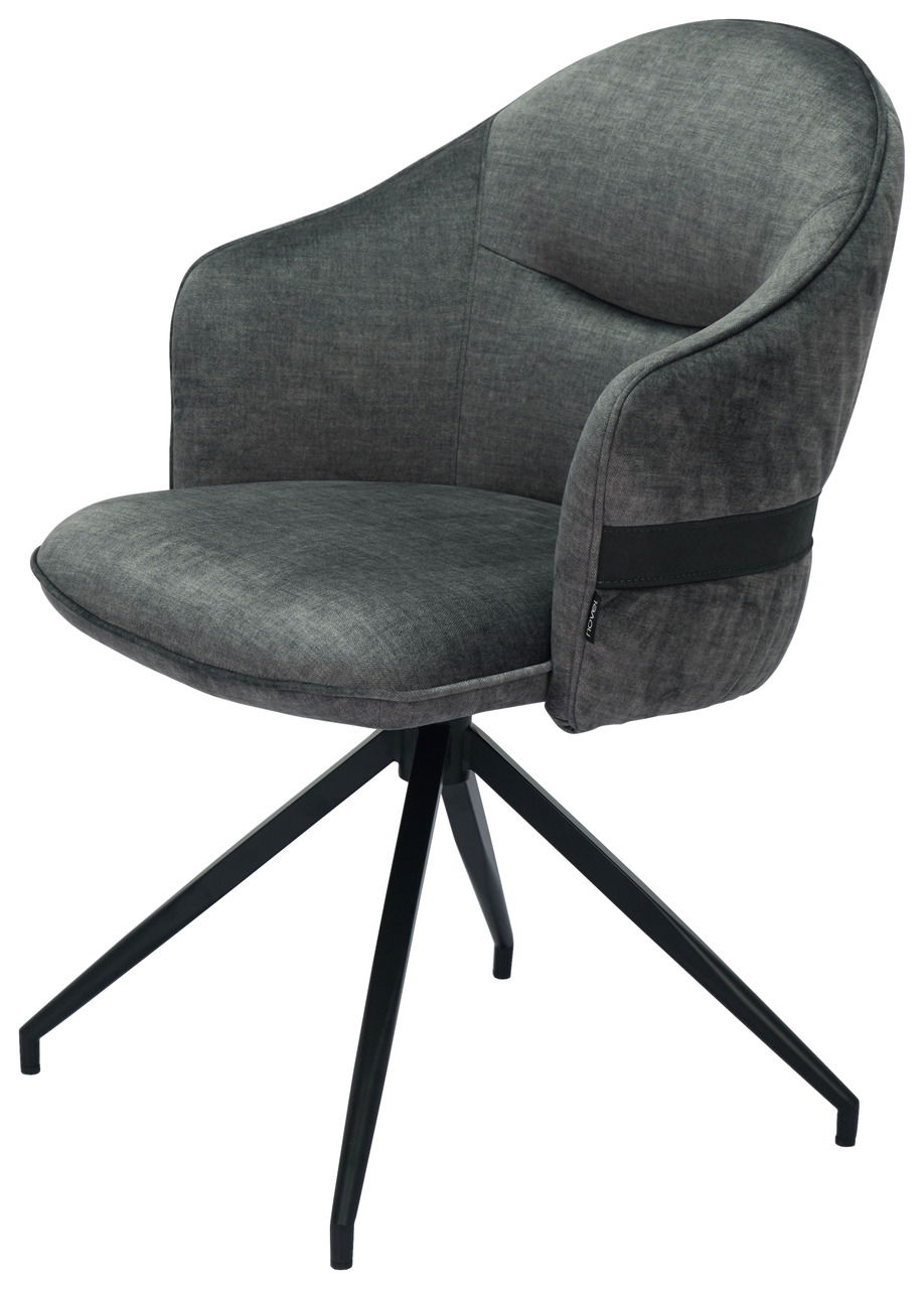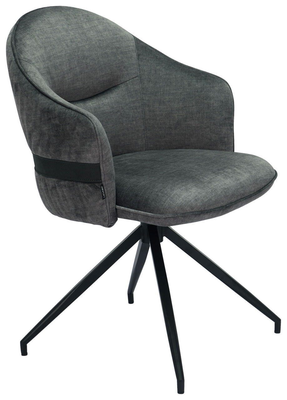 Ein designstarkes Kontrastmöbel ist der Novel Stuhl "VOGUE". Er harmoniert zu hellem Hochglanz- sowie Holzinterieur. Seine samtartige Stoffausstattung in Graphit mit Rückenziernaht strahlt einladende Gemütlichkeit aus. Raffinierte Akzente setzen der rückseitig abgesetzte breite Querstreifen sowie das mattschwarze Stativ-Metallgestell.