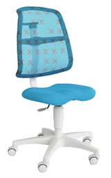 Mit dem Paidi Jugendstuhl "SINO 2" werden moderne Kinderzimmer funktional ausgestattet. Sein blauer Polyesterbezugsstoff wirkt mit dem grauen X-Muster im Rückenbereich zum weißen Metallunterbau trendig.