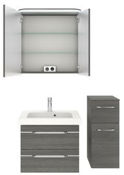 Der Pelipal Badblock BALTO SPRINT vereint modernes Design und Funktionalität in einem stilvollen Graphit-Finish. Die elegante Kombination aus Front und Korpus in Graphit verleiht Ihrem Badezimmer eine zeitgemäße und trendige Atmosphäre. Gefertigt aus hochwertiger Holznachbildung, bietet dieser Badblock eine robuste und langlebige Lösung für Ihr Zuhause. Die griffigen Griffe ergänzen das minimalistische Design und sorgen für eine komfortable Handhabung. Dank der Softclose-Technologie schließen die Türen sanft und leise, was den täglichen Gebrauch besonders angenehm macht. Die integrierte LED-Beleuchtung mit einer Nennleistung von 6 W sorgt für eine optimale Ausleuchtung und setzt den Badblock perfekt in Szene.