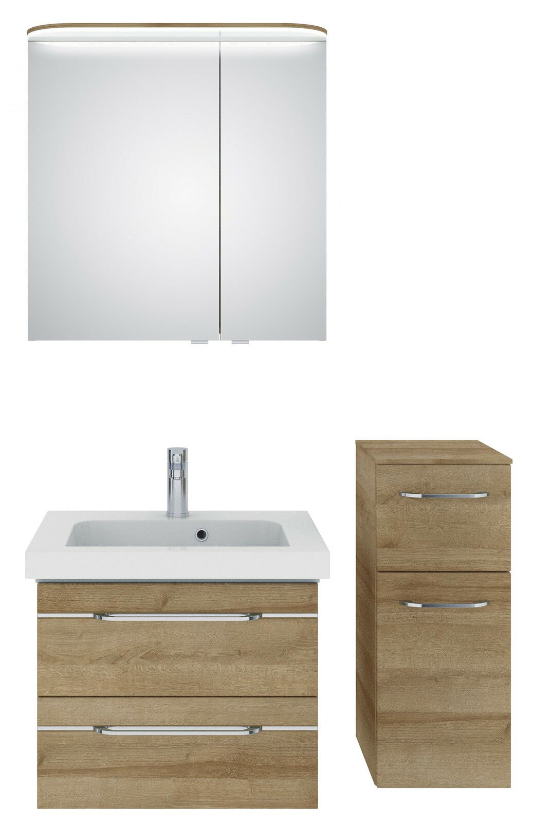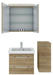 Entdecken Sie den Pelipal Badblock BALTO SPRINT, der mit seinem modernen und trendigen Design in Riviera Eiche Ihr Badezimmer stilvoll aufwertet. Die einheitliche Farbgestaltung der Front und des Korpus in Riviera Eiche sorgt für ein harmonisches Gesamtbild. Aus hochwertigen Holznachbildungen gefertigt, bietet dieser Badblock nicht nur eine ansprechende Optik, sondern auch Langlebigkeit. Die integrierten LED-Leuchtmittel mit einer Nennleistung von 6 W sorgen für eine angenehme Beleuchtung und setzen Ihre Badezimmerutensilien gekonnt in Szene. Mit der praktischen Softclose-Funktion gehören laute Geräusche beim Schließen der Schränke der Vergangenheit an.
