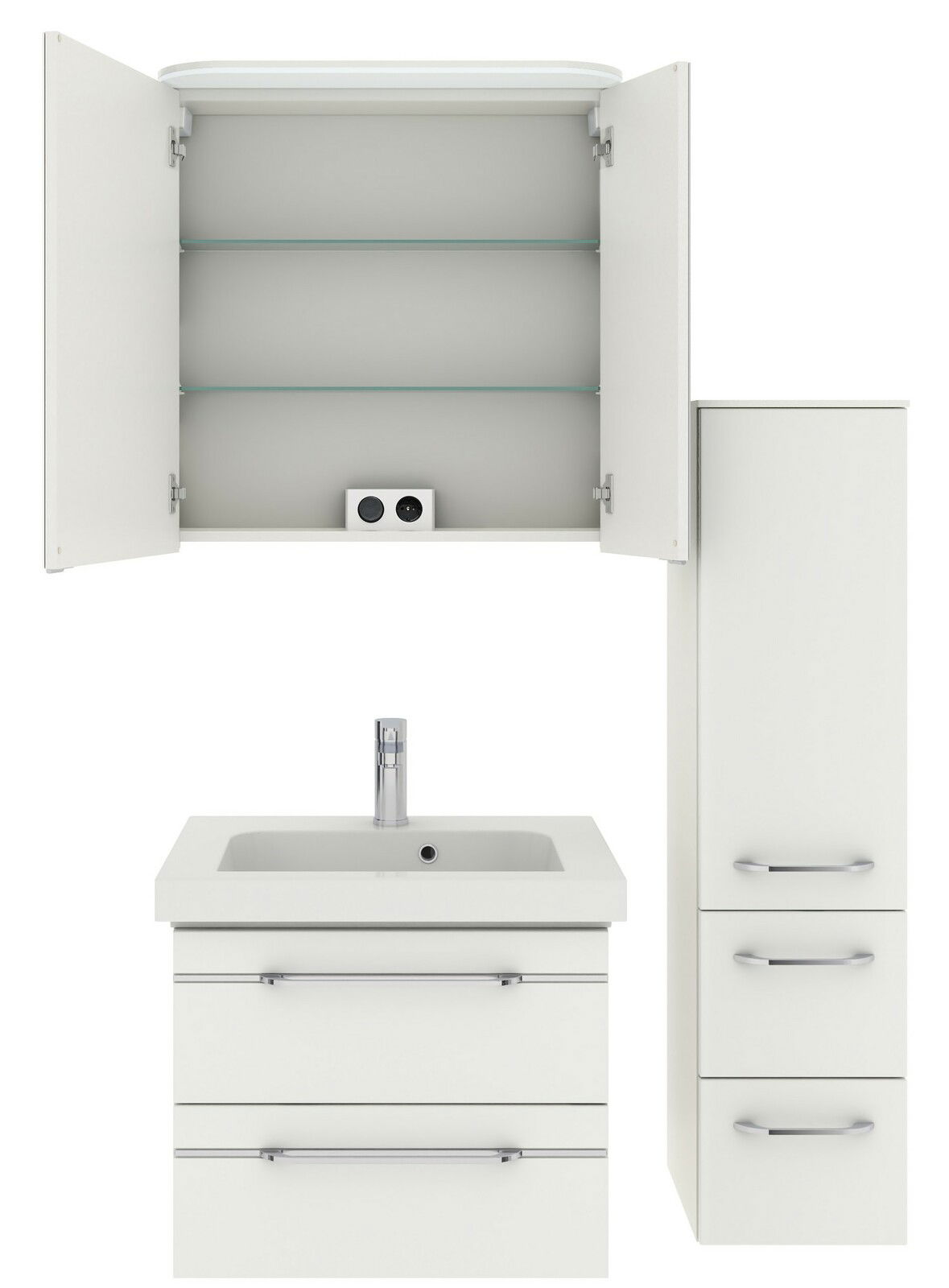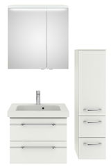 Der Pelipal Badblock BALTO SPRINT beeindruckt durch sein modernes Design in strahlendem Weiß. Die hochglänzende Front und der weiße Korpus harmonieren perfekt und bringen zeitlose Eleganz in jedes Badezimmer. Die hochwertige Holznachbildung sorgt nicht nur für eine ansprechende Optik, sondern auch für langlebige Stabilität. Ausgestattet mit praktischen Griffen, bietet dieser Badblock nicht nur Stil, sondern auch Funktionalität. Die integrierte LED-Beleuchtung sorgt für das richtige Licht, um eine angenehme Atmosphäre im Bad zu schaffen. Dank der Softclose-Funktion schließen die Türen sanft und leise, was den Komfort zusätzlich erhöht.