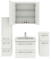 Erleben Sie zeitgenössische Eleganz mit dem Pelipal Badblock BALTO SPRINT. Dieser stilvolle Badblock besticht durch seine hochglänzende weiße Front und den weißen Korpus, die Ihrem Bad ein frisches und modernes Aussehen verleihen. Gefertigt aus hochwertiger Holznachbildung, bietet das Möbelstück sowohl Langlebigkeit als auch ein ansprechendes Design. Die integrierte LED-Beleuchtung sorgt für eine optimale Ausleuchtung und trägt zur modernen Ästhetik bei. Dank der Softclose-Funktion schließen die Türen sanft und leise, was den Komfort zusätzlich erhöht. Die hängende Aufstellmöglichkeit verleiht dem Raum ein Gefühl von Leichtigkeit und schafft mehr Platz am Boden.