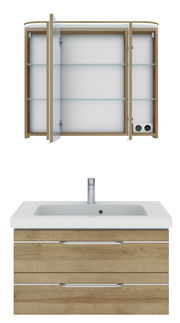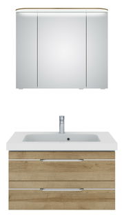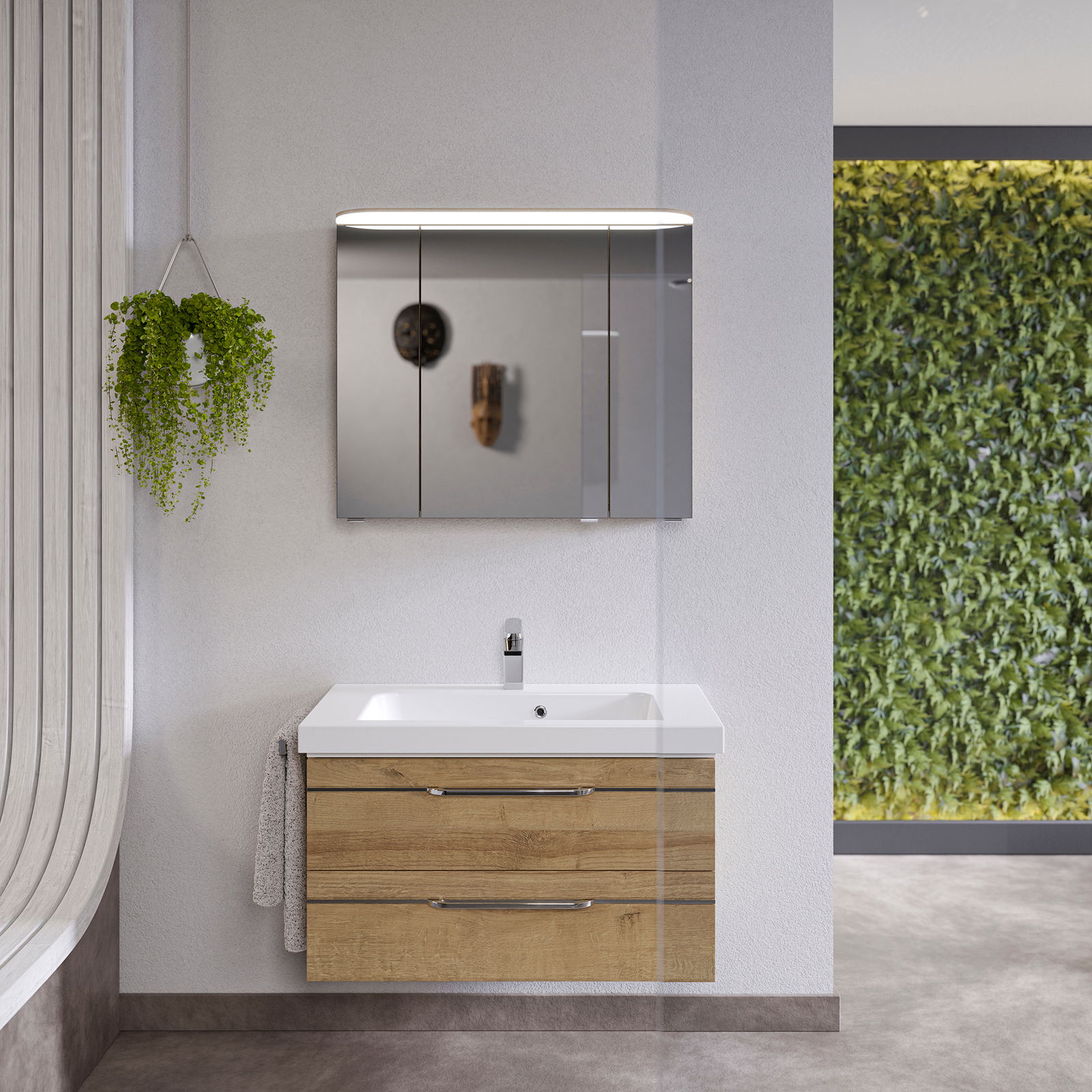 Erleben Sie den stilvollen Pelipal Badblock BALTO SPRINT, der mit seinem modernen Design und der eleganten Farbe Riviera Eiche Ihr Badezimmer auf ein neues Niveau hebt. Der Badblock besteht aus hochwertiger Holznachbildung und bietet durch seine hängende Aufstellungsmöglichkeit eine platzsparende Lösung für jedes Bad. Ausgestattet mit zwei Schubladen, die über Softclose-Funktion verfügen, sorgt dieser Badblock für ein geräuschloses und komfortables Schließen. Die integrierte LED-Beleuchtung mit einer Nennleistung von 8.6 W setzt den Badblock optimal in Szene. Die Griffe in modernem Design runden das stilvolle Erscheinungsbild perfekt ab.