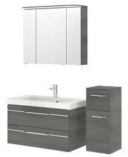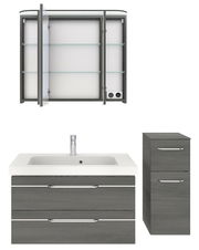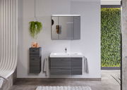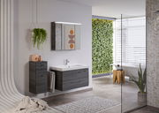 Der Pelipal Badblock BALTO SPRINT vereint modernes Design mit funktionaler Eleganz und wird zum Highlight in jedem Badezimmer. In der stilvollen Farbe Graphit präsentiert sich dieser Badblock sowohl an der Front als auch am Korpus einheitlich und edel. Die durchdachte Materialwahl aus hochwertiger Holznachbildung sorgt für eine langlebige Nutzung. Dank der integrierten Softclose-Funktion schließen die Türen sanft und geräuschlos. Die hängende Aufstellmöglichkeit verleiht dem Raum eine leichte und moderne Optik. Abgerundet wird das Design durch die praktischen Griffe, die einen komfortablen Zugang zu den Stauräumen bieten.