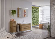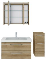 Der Pelipal Badblock BALTO SPRINT bringt modernes Design und Funktionalität in Ihr Badezimmer. In der stilvollen Farbe Riviera Eiche gehalten, fügt sich dieser Badblock harmonisch in jedes trendbewusste Interieur ein. Die hochwertigen Fronten und der Korpus aus Holznachbildung überzeugen auf den ersten Blick. Ausgestattet mit praktischen Griffen und einer Softclose-Funktion, bietet der Badblock nicht nur eine ästhetische, sondern auch eine komfortable Nutzung. Die integrierte Beleuchtung mit LED-Leuchtmitteln sorgt für ein angenehmes, warmes Licht und hebt die Schönheit der Eichenoptik hervor. Die hängende Aufstellung verleiht Ihrem Badezimmer zudem eine moderne Leichtigkeit.