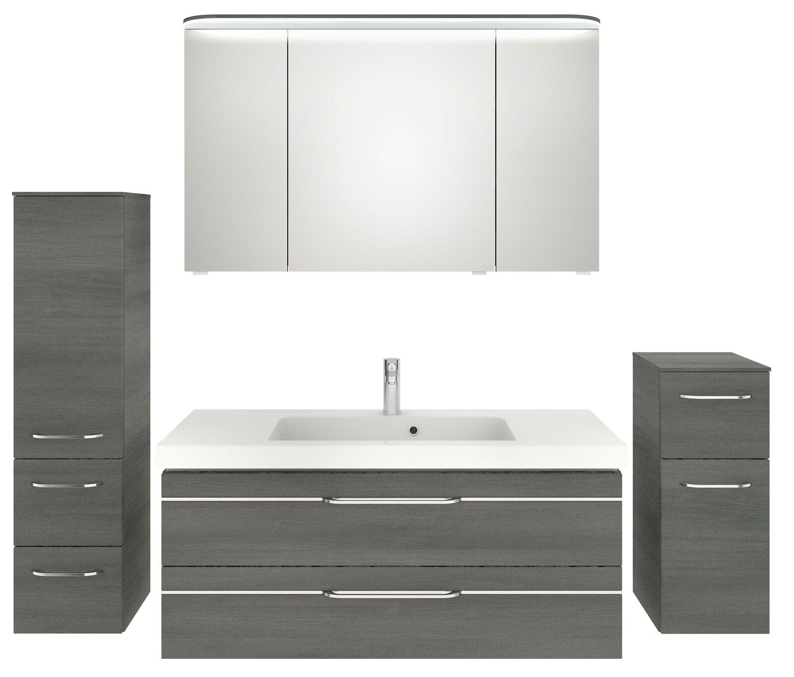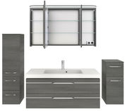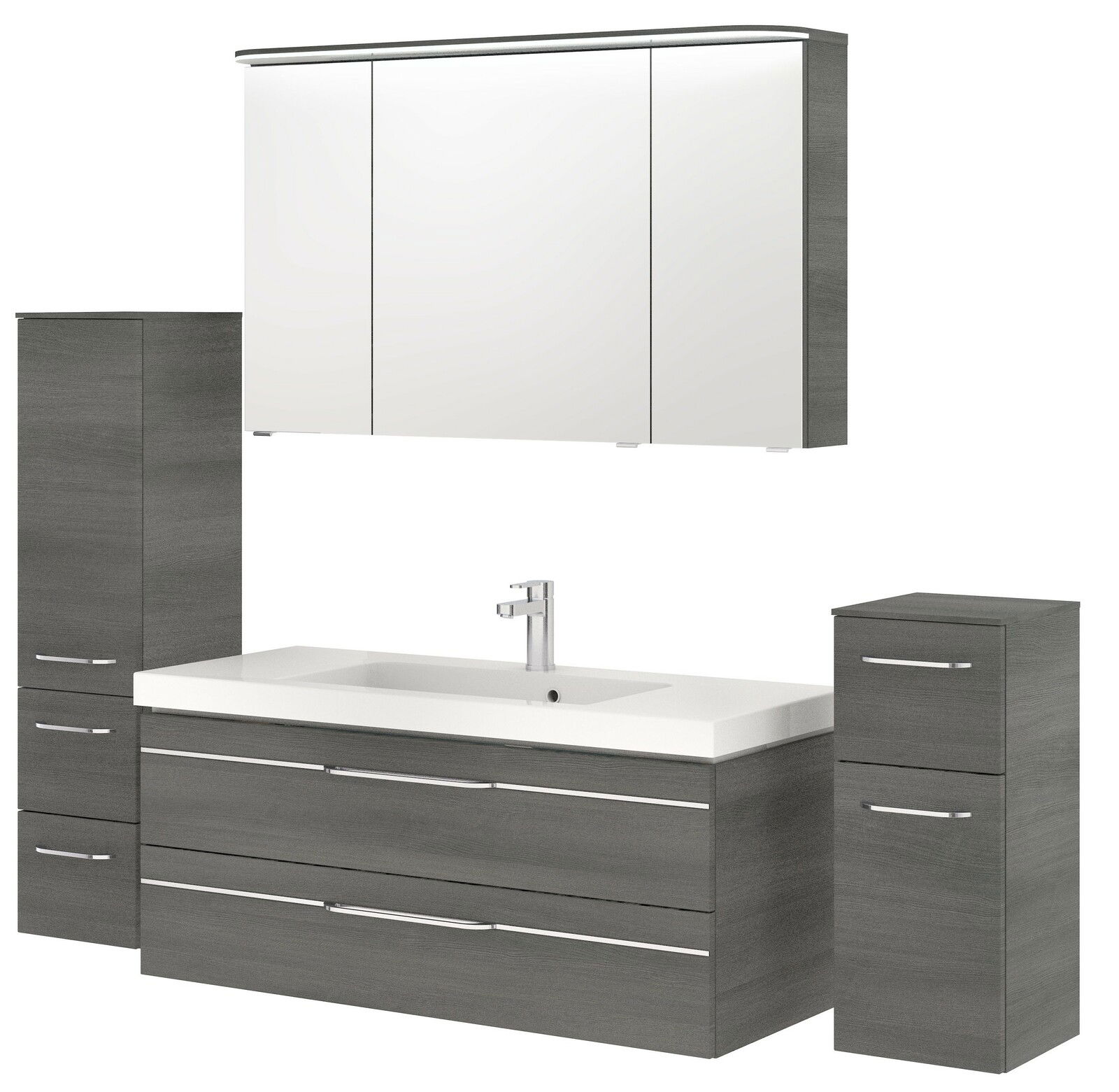 Der Pelipal Badblock BALTO SPRINT präsentiert sich in einem modernen Stil, der durch das elegante Graphit-Finish von Front und Korpus besticht. Die Holznachbildung sorgt für eine hochwertige Optik, die Ihrem Badezimmer einen Hauch von Design verleiht. Die integrierte LED-Beleuchtung mit einer Nennleistung von 12.1 W sorgt für eine angenehm helle Ausleuchtung Ihres Badezimmers, während die praktische Grifflösung den Zugang zu Stauraum einfach und effizient gestaltet. Der hängende Aufbau des Badblocks schafft zudem ein luftiges und aufgeräumtes Erscheinungsbild. Mit der Softclose-Funktion wird das sanfte Schließen der Türen garantiert.