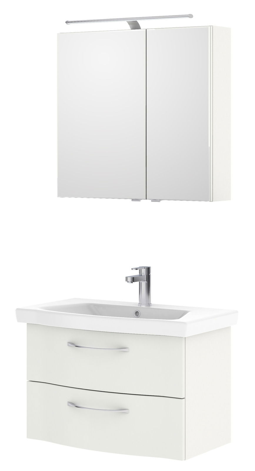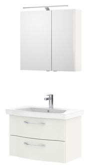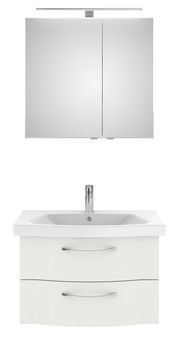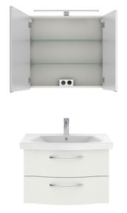 Der Pelipal Badblock Serie 6005 Sprint vereint modernes Design mit Funktionalität und ist die perfekte Ergänzung für jedes stilbewusste Badezimmer. In elegantem Weiß gehalten, strahlt der Badblock in hochglänzender Frontoptik eine zeitlose Eleganz aus. Die Holznachbildung des Hauptmaterials sorgt für eine ansprechende Optik, die durch die integrierte LED-Beleuchtung zusätzlich hervorgehoben wird. Mit zwei geräumigen Schubladen und einer Drehtür bietet der Badblock ausreichend Stauraum für Ihre Badutensilien. Dank der Softclose-Funktion schließen die Türen sanft und geräuschlos, während die praktischen Griffe eine einfache Handhabung gewährleisten.
