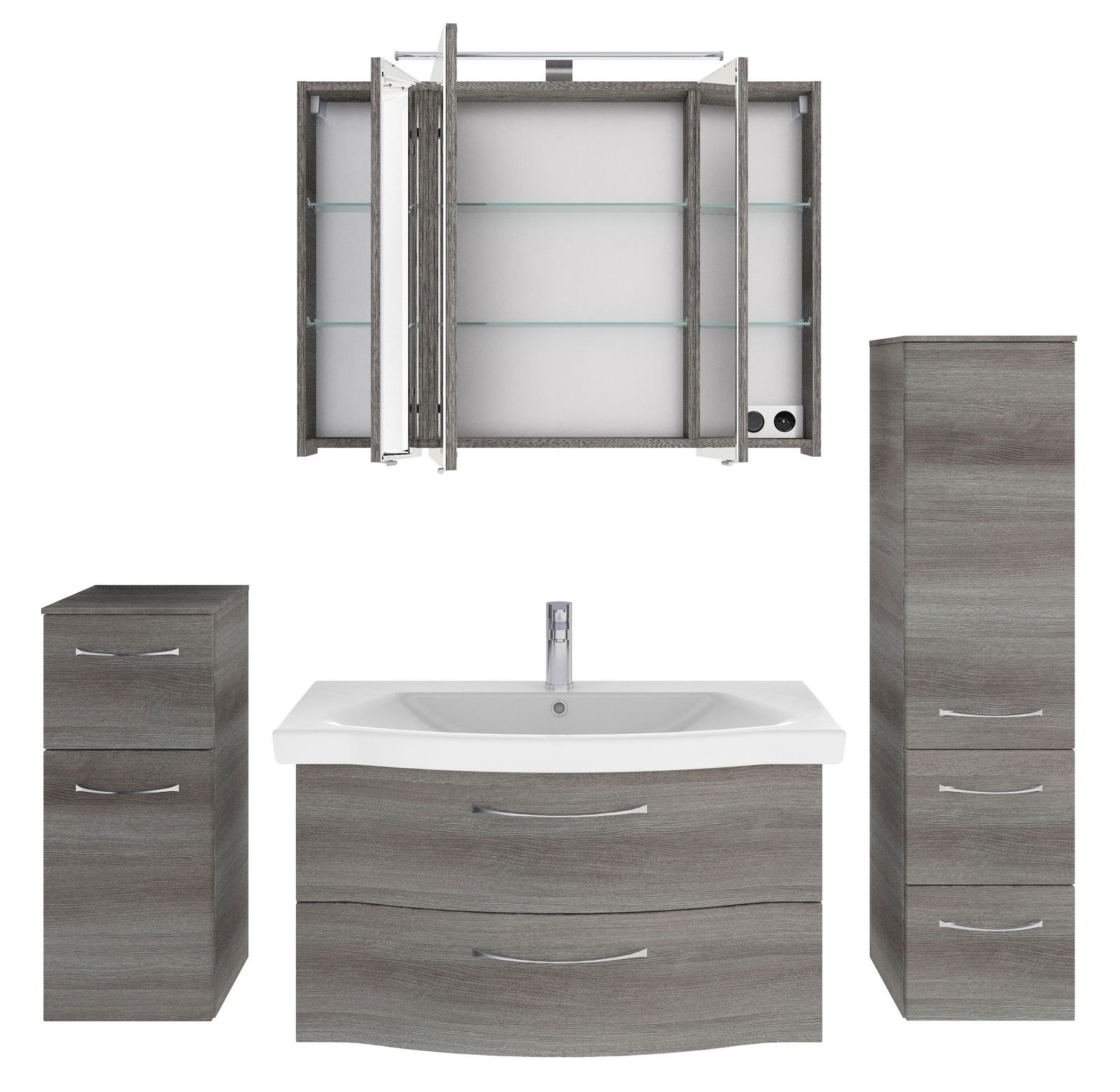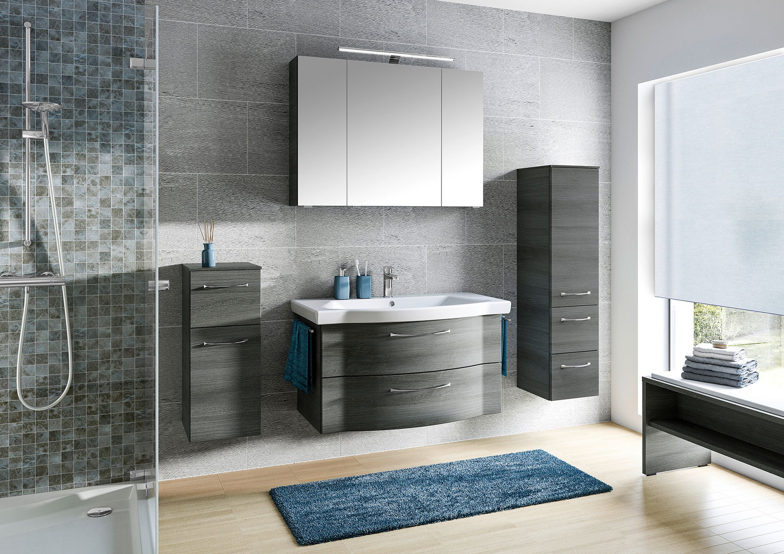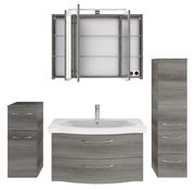 Entdecken Sie den Pelipal Badblock SERIE 6005 SPRINT, der mit seinem modernen Stil und dem eleganten Graphit-Finish überzeugt. Sowohl der Front- als auch der Korpusbereich sind in der zeitlosen Farbe Graphit gehalten und sorgen für ein harmonisches Erscheinungsbild in Ihrem Badezimmer. Dieser Badblock ist nicht nur ein ästhetisches Highlight, sondern bietet auch praktische Funktionen wie die Softclose-Technologie für sanftes und geräuschloses Schließen der Türen. Die integrierte LED-Beleuchtung mit einer Nennleistung von 7 W schafft eine angenehme Atmosphäre und ist bereits im Lieferumfang enthalten. Die Leuchtmittel sind jedoch nicht austauschbar.