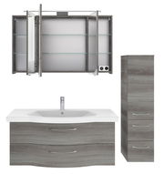 Der Pelipal Badblock SERIE 6005 SPRINT vereint modernes Design und Funktionalität in einem stilvollen Möbelstück. Die elegante Graphitfarbe der Front und des Korpus sorgt für ein harmonisches Gesamtbild in Ihrem Badezimmer. Gefertigt aus hochwertiger Holznachbildung, bietet der Badblock nicht nur optische, sondern auch praktische Vorteile. Zwei Schubladen mit Softclose-Funktion ermöglichen ein geräuschloses Schließen und bieten ausreichend Stauraum für Ihre Badutensilien. Die Ausstattung mit LED-Beleuchtung sorgt für eine stimmungsvolle Atmosphäre und setzt den Badblock perfekt in Szene. Der Badblock kann hängend montiert werden, was für eine moderne und platzsparende Lösung sorgt.
