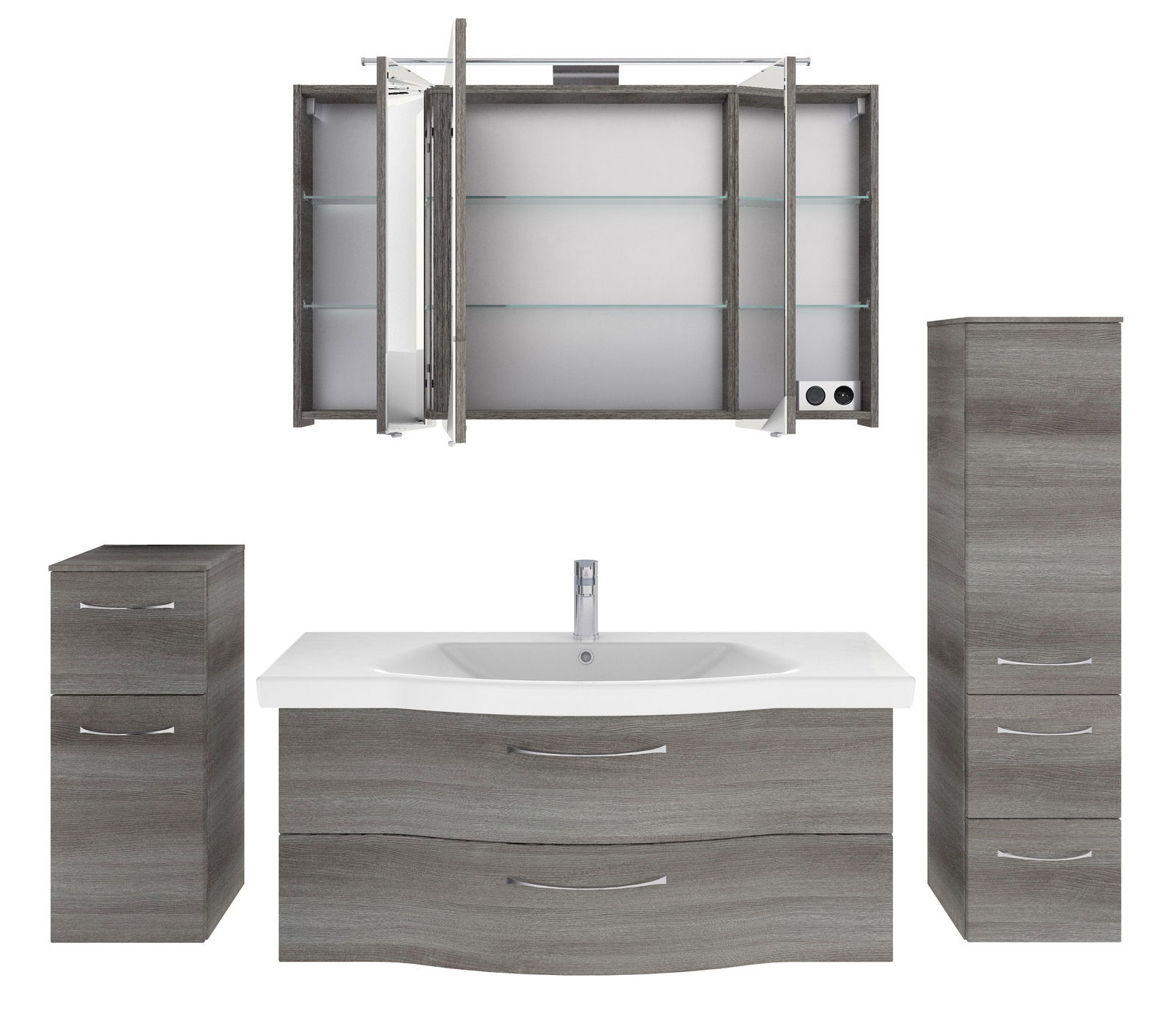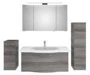 Entdecken Sie den modernen Pelipal Badblock der Serie 6005 Sprint, der mit seinem trendigen Design und der eleganten Graphitfarbe Ihre Badezimmereinrichtung aufwertet. Der Block ist vollständig in einem harmonischen Graphitton gehalten, der sowohl Front als auch Korpus umfasst. Die Kombination aus hochwertiger Holznachbildung und stilvollen Griffen verleiht diesem Badmöbelset eine zeitgemäße Ästhetik. Besonders praktisch ist die integrierte LED-Beleuchtung, die nicht nur für eine angenehme Atmosphäre sorgt, sondern mit einer Nennleistung von 10 W auch energieeffizient ist. Die Softclose-Funktion der Türen bietet maximalen Komfort und Langlebigkeit.