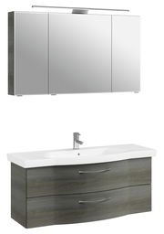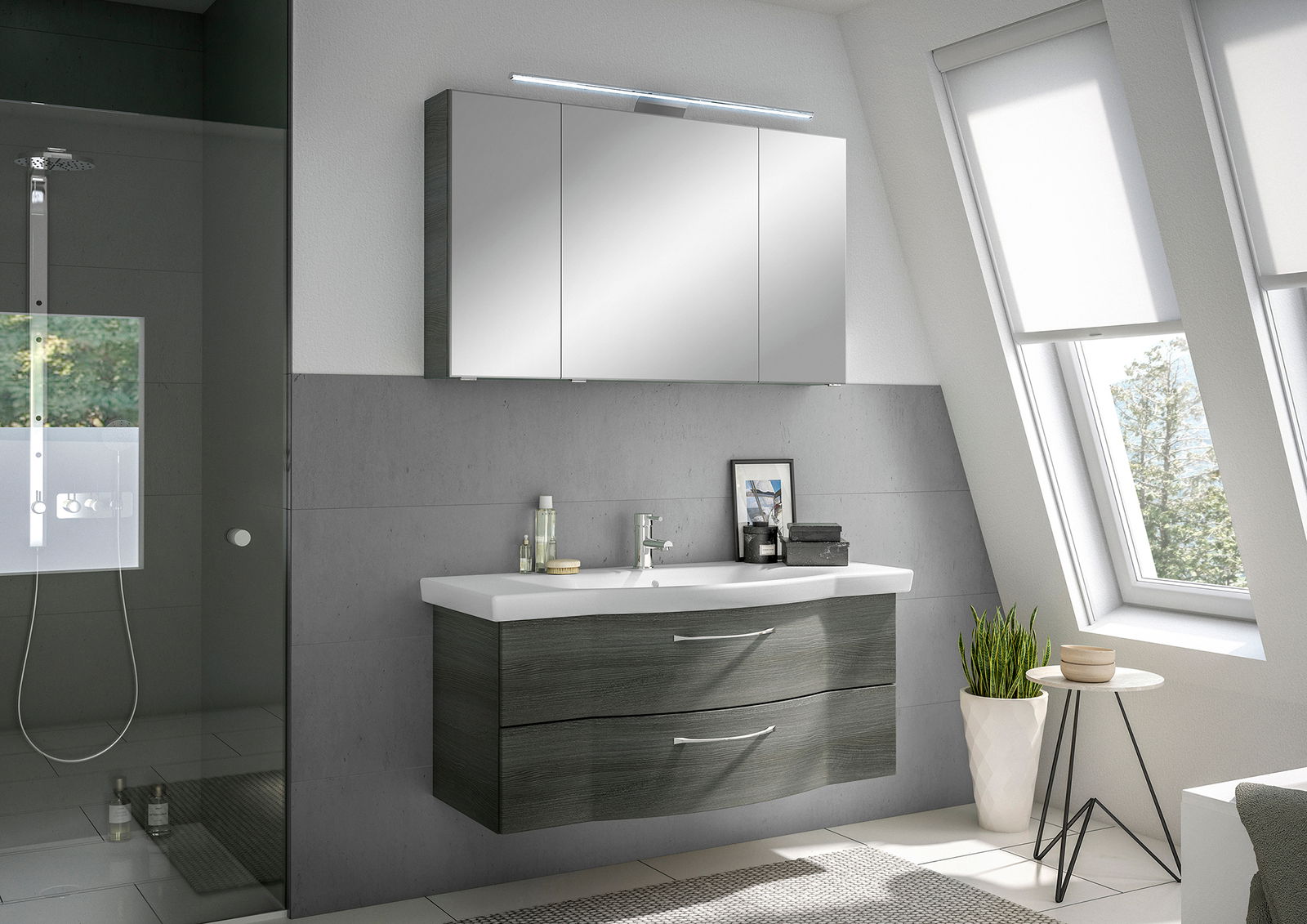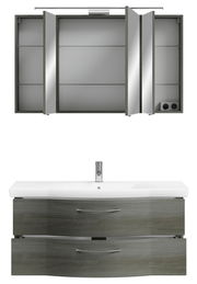 Erleben Sie modernes Design mit dem Pelipal Badblock SPRINT. Dieser stilvolle Badblock präsentiert sich in einem eleganten Graphit-Ton, sowohl für die Front als auch den Korpus, und verleiht Ihrem Badezimmer einen trendigen Touch. Die hochwertige Holznachbildung sorgt für ein ansprechendes Erscheinungsbild und gleichzeitig für Langlebigkeit. Der Badblock ist mit zwei geräumigen Schubladen ausgestattet, die über praktische Griffe verfügen und dank der Softclose-Funktion sanft und leise schließen. Die integrierte LED-Beleuchtung mit einer Nennleistung von 10 W bringt Ihr Badezimmer zum Strahlen und schafft eine angenehme Atmosphäre. Genießen Sie Komfort und Stil in einem kompakten Design.