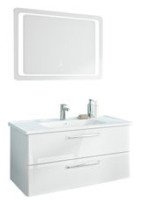 Badblock mit schaltbarem Oberlicht (Energieeffizienzklasse A)Die B ca. 109 cm breite Kombination aus hochwertiger Holznachbildung passt in geräumige Bäder. Für Stauflächen sorgen zwei geräumige Softclose-Vollauszüge im Waschtischunterschrank. Das robuste, armaturlose Keramikbecken bietet ebenfalls Ablagemöglichkeiten. Im Spiegelschrank (inkl. LED-Lichtleiste, Steckdose) befinden sich hinter drei gedämpften Türen sechs praktische Fachböden. Wählen Sie den Pelipal Badblock "TRENTINO"!