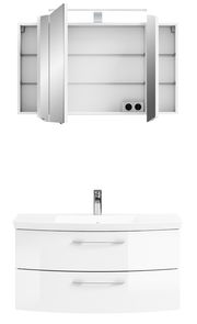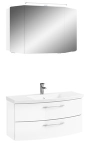 Die Pelipal Badkombination CASSCA SPRINT vereint modernes Design mit durchdachter Funktionalität und ist die perfekte Wahl für stilbewusste Badezimmer. Mit ihrer Front in weißem Hochglanz und einem Korpus in Weiß bietet sie eine elegante und zeitlose Optik. Die Kombination aus hochwertigen Materialien und einem modernen Stil macht diese Badkombination zu einem echten Hingucker. Ausgestattet mit Softclose-Technologie und zwei geräumigen Schubladen, sorgt sie für eine leise und komfortable Nutzung. Die integrierte LED-Beleuchtung mit 8 W Nennleistung setzt das Möbelstück perfekt in Szene und schafft eine angenehme Atmosphäre in Ihrem Badezimmer.