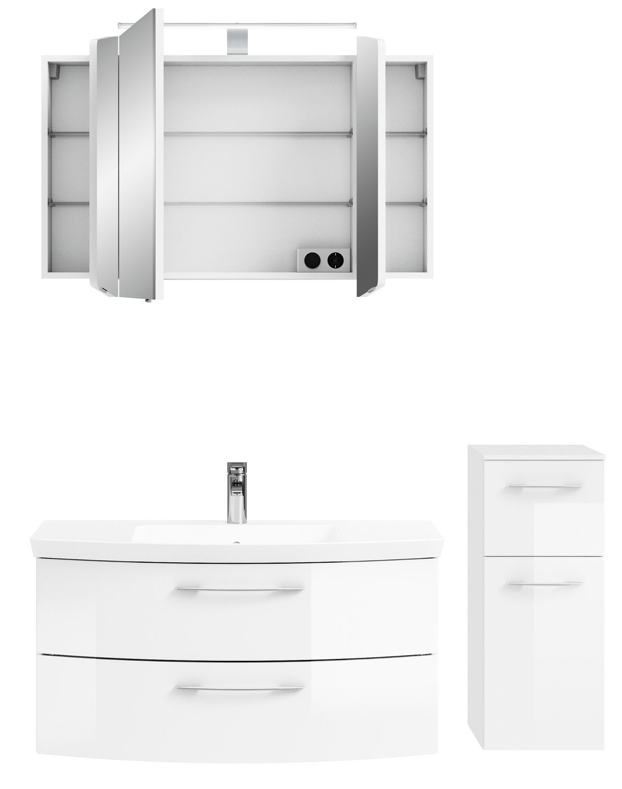 Die Pelipal Badkombination CASSCA SPRINT vereint modernes Design mit hoher Funktionalität und bringt frischen Stil in Ihr Badezimmer. Die Front in weißem Hochglanz und der Korpus in elegantem Weiß verleihen dem Raum eine helle und freundliche Atmosphäre. Aus hochwertiger Holznachbildung gefertigt, bietet diese Kombination nicht nur ansprechende Optik, sondern auch langlebige Beständigkeit. Die hängende Aufstellmöglichkeit sorgt für eine platzsparende Integration in Ihr bestehendes Raumkonzept. Dank der integrierten LED-Beleuchtung mit 8 W Nennleistung erleben Sie eine angenehme Helligkeit. Softclose-Funktionen und robuste Griffe runden das Gesamtbild harmonisch ab.