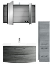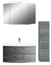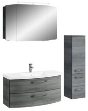 Die Pelipal Badkombination CASSCA SPRINT vereint modernes Design mit Funktionalität. Der stilvolle Graphit-Ton, der sowohl für die Front als auch den Korpus verwendet wird, verleiht Ihrem Badezimmer eine elegante und zeitgemäße Atmosphäre. Die Kombination aus hochwertiger Holznachbildung und LED-Beleuchtung sorgt für ein harmonisches Gesamtbild. Dank der Softclose-Funktion schließen die Schränke sanft und leise, während die Griffe ein bequemes Öffnen ermöglichen. Die integrierte Beleuchtung mit einer Nennleistung von 8 W schafft ein angenehmes Ambiente. Setzen Sie auf Qualität und Stil mit dieser trendigen Badkombination, die Ihr Badezimmer in ein modernes Wohlfühlparadies verwandelt.
