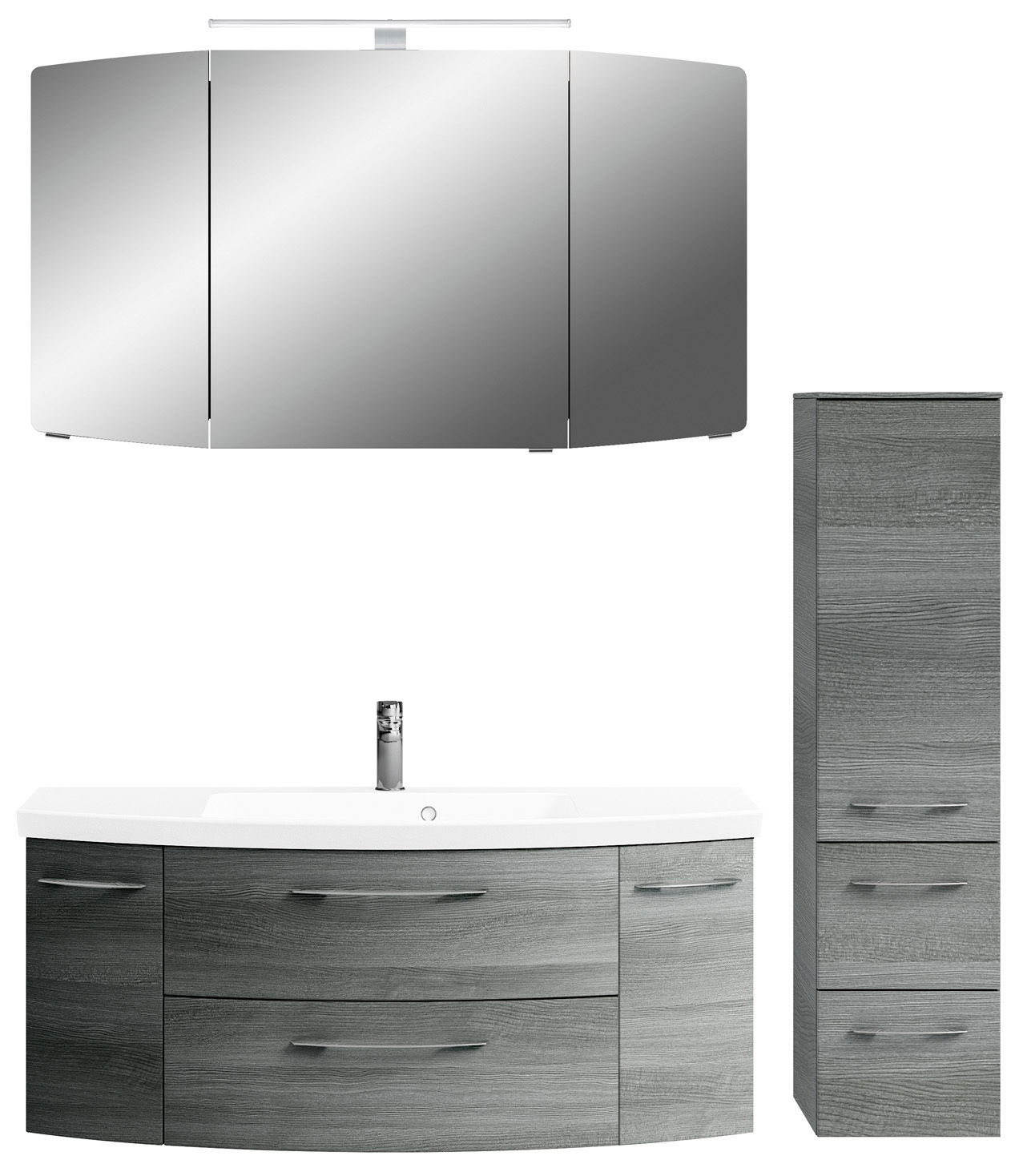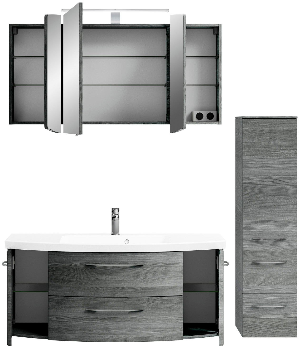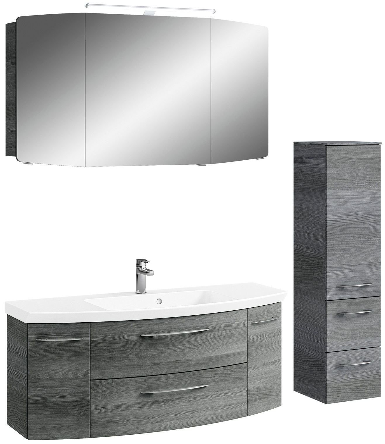 Die Pelipal Badkombination CASSCA SPRINT besticht durch ihr stilvolles, modernes Design in einem eleganten Graphit-Ton. Diese Kombination ist perfekt für trendbewusste Badezimmer und bietet eine harmonische Ergänzung zu jeder zeitgemäßen Einrichtung. Die Front und der Korpus sind in der Hauptfarbe Graphit gehalten, was dem Badezimmer eine ruhige und edle Atmosphäre verleiht. Ausgestattet mit praktischen Griffen und einem hochwertigen Holznachbildungsmaterial, verbindet die Kombination Funktionalität und Ästhetik. Die hängende Aufstellmöglichkeit sorgt für ein modernes Erscheinungsbild und spart gleichzeitig Platz im Badezimmer. Die Softclose-Funktion garantiert sanftes und geräuschloses Schließen der Türen.