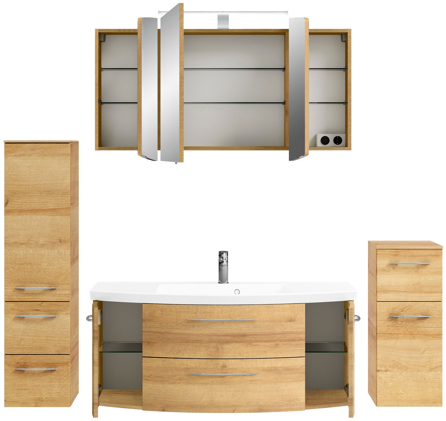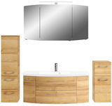 Erleben Sie die perfekte Kombination aus Stil und Funktionalität mit der Pelipal Badkombination CASSCA SPRINT. Dieses moderne Möbelstück besticht durch sein elegantes Design in der attraktiven Farbe Riviera Eiche, die sowohl für die Front als auch den Korpus verwendet wird. Die Holznachbildung sorgt für eine ansprechende Optik, die jedem Badezimmer ein zeitgemäßes Ambiente verleiht. Ausgestattet mit praktischen Griffen, bietet die Badkombination nicht nur ästhetische Vorzüge, sondern auch eine hohe Benutzerfreundlichkeit. Die integrierte LED-Beleuchtung mit einer Nennleistung von 8 W sorgt für optimale Lichtverhältnisse und unterstreicht das moderne Design. Dank der Softclose-Funktion schließen die Türen sanft und leise.
