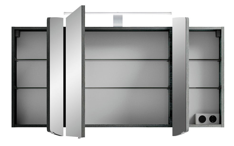 Der Pelipal Spiegelschrank CASSCA SPRINT vereint modernes Design mit praktischer Funktionalität und ist ein Highlight für jedes Badezimmer. Der Korpus in einem eleganten Graphitton verleiht dem Raum eine zeitgemäße und trendige Atmosphäre. Ausgestattet mit drei Drehtüren bietet der Spiegelschrank genügend Stauraum für all Ihre Pflegeprodukte. Die hochwertige Holznachbildung als Hauptmaterial sorgt für Langlebigkeit und eine angenehme Haptik. Mit der integrierten LED-Beleuchtung wird der Schrank nicht nur zum stilvollen Einrichtungsgegenstand, sondern auch zur optimalen Lichtquelle. Die Beleuchtung hat eine Nennleistung von 8 W und ist ideal für Ihre täglichen Routinen.