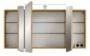 Spiegelschrank CASSCA SPRINT – Mit integrierter Beleuchtung Der Pelipal Spiegelschrank CASSCA SPRINT ist nicht nur ein optisches Highlight, sondern auch äußerst praktisch. Die integrierte LED-Beleuchtung sorgt für eine perfekte Ausleuchtung des Spiegels, während die drei Drehtüren genügend Stauraum bieten. Das stilvolle Design in Riviera Eiche verleiht Ihrem Badezimmer eine moderne Note. Die LED-Leuchtmittel sind im Lieferumfang enthalten, jedoch nicht austauschbar, was die Pflege unkompliziert macht. Entdecken Sie, wie dieser Spiegelschrank Ihre tägliche Routine erleichtern kann. Erleben Sie jetzt die perfekte Kombination aus Design und Funktionalität in Ihrem Badezimmer.