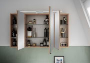 Spiegelschrank SPRINT mit LED-Beleuchtung Die Beleuchtung dieses Spiegelschranks ist ein herausragendes Merkmal, das Ihr Badezimmer in ein modernes Ambiente verwandelt. Dank der effizienten LED-Leuchtmittel wird nicht nur Energie gespart, sondern auch für eine gleichmäßige und helle Ausleuchtung gesorgt, die das tägliche Styling erleichtert. Die drei Drehtüren des Schrankes bieten großzügigen Stauraum und ermöglichen einen einfachen Zugang zu Ihren Badutensilien. Die Kombination aus Funktionalität und stilvollem Design macht diesen Spiegelschrank zur perfekten Wahl für Ihr Zuhause. Erleben Sie jetzt die perfekte Mischung aus Design und Funktionalität mit dem Pelipal Spiegelschrank SPRINT!