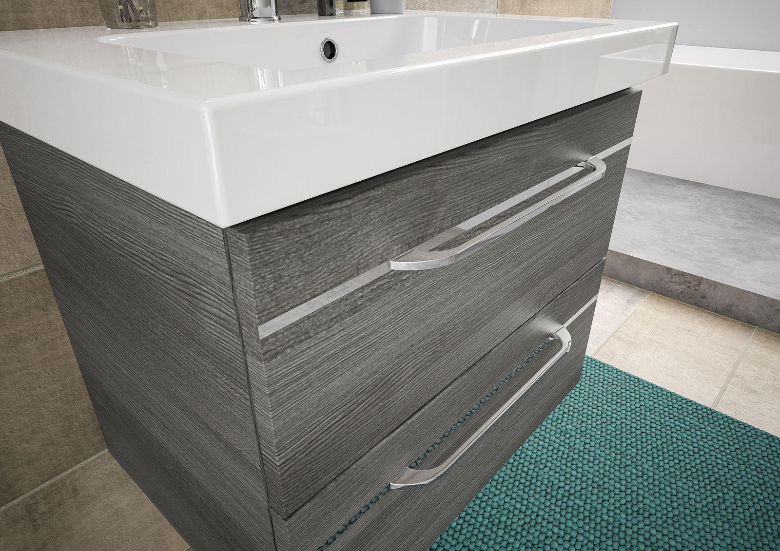 Entdecken Sie die elegante Pelipal Waschtischlösung BALTO SPRINT, die mit ihrem modernen Design und der trendigen Graphit-Farbe beeindruckt. Diese hängende Waschtischlösung vereint Stil und Funktionalität, perfekt für Ihr modernes Badezimmer. Der hochwertige Korpus und die Front in Graphit verleihen dem Raum eine zeitlose Eleganz. Aus Holznachbildung gefertigt, bietet diese Lösung nicht nur eine ansprechende Optik, sondern auch eine langlebige Qualität. Zwei geräumige Schubladen mit Softclose-Funktion sorgen dafür, dass Sie Ihre Badutensilien ordentlich und leise verstauen können. Die praktischen Griffe runden das Design ab und erleichtern die Handhabung.