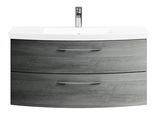 Die Pelipal Waschtischlösung CASSCA SPRINT vereint modernes Design mit Funktionalität und bietet eine stilvolle Ergänzung für jedes Badezimmer. In elegantem Graphit gehalten, verschmilzt das Ensemble aus Front und Korpus nahtlos zu einem harmonischen Gesamtbild. Die hochwertige Holznachbildung schafft eine warme und zugleich zeitgemäße Atmosphäre. Die zwei geräumigen Schubladen mit Softclose-Funktion bieten ausreichend Stauraum und sorgen für ein leises Schließen. Der hängende Aufbau verleiht dem Raum eine luftige Leichtigkeit und setzt stilvolle Akzente. Die praktischen Griffe unterstreichen den modernen Look und bieten gleichzeitig eine komfortable Handhabung.