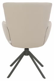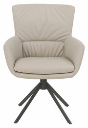 Der Plantagie Armlehnstuhl AIDA kombiniert modernes Design mit höchstem Komfort. Der Bezug aus hochwertigem Leder in der Farbe Latte verleiht dem Stuhl eine edle, zeitlose Optik. Die Hauptfarbe Creme harmoniert perfekt mit dem grauen Metallfuß, der dem Stuhl Stabilität und einen Hauch von Eleganz verleiht. Die innovative Lendenoptik im Innenrücken bietet nicht nur eine stilvolle Erscheinung, sondern auch zusätzlichen Komfort für den Rücken. Mit einer Sitzhöhe von 48,5 cm und einer Sitztiefe von 48 cm bietet dieser Stuhl optimalen Sitzkomfort. Dank seiner Drehbarkeit ist er perfekt für jede moderne Wohn- oder Büroumgebung geeignet.