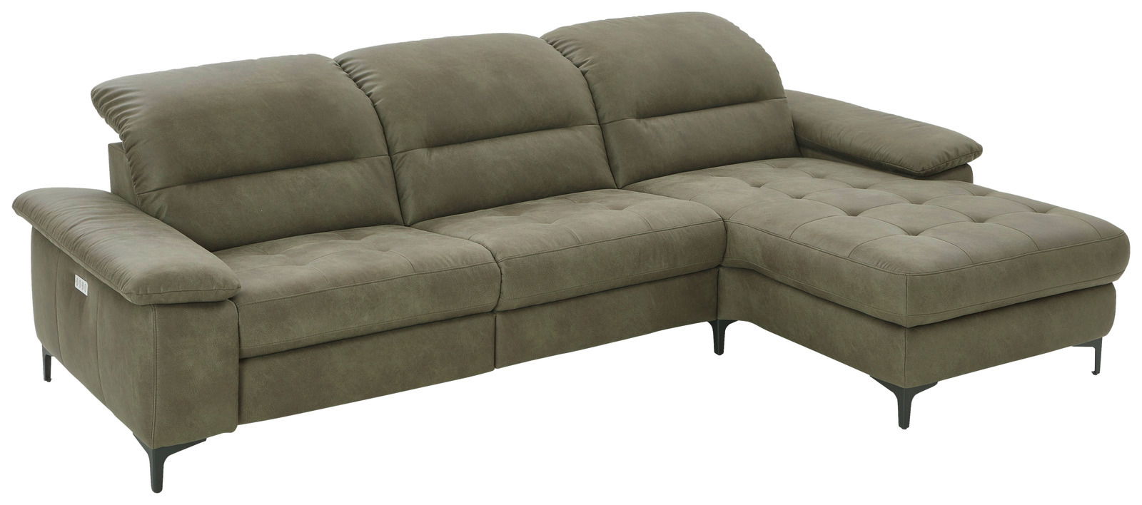 Erleben Sie ein neues Level des Komforts mit der Pure Home Comfort Longchairkombination PURE COMFORT 820. Diese moderne und trendige Designkombination vereint Funktionalität und Stil in einem eleganten Gesamtbild. Der Stoffbezug in Savanna olive verleiht dem Ensemble eine natürliche Eleganz, während die schwarze Metallfüße einen modernen Akzent setzen. Die Polsterung mit Nosagunterfederung sorgt für langanhaltenden Sitzkomfort, ergänzt durch eine manuelle Kopfteilverstellung, die Ihnen individuelle Anpassungen ermöglicht. Mit einer Sitzhöhe von 47 cm und einer Sitztiefe von 56 cm bietet diese Kombination großzügigen Platz zum Entspannen. Die hohe Abriebfestigkeit und Pillingbildung garantieren eine lange Lebensdauer des Stoffes.