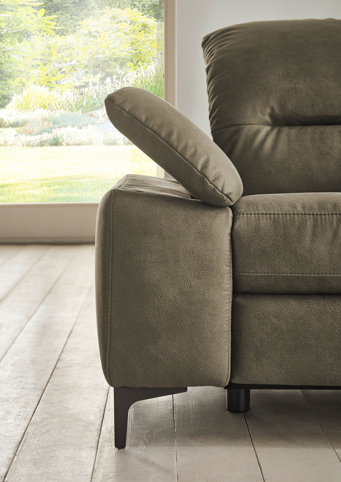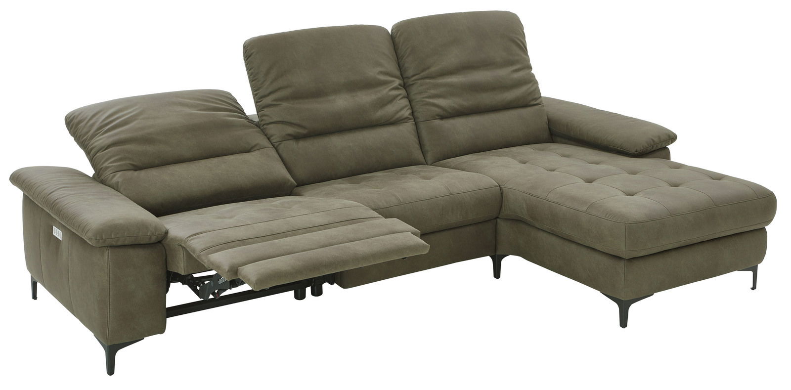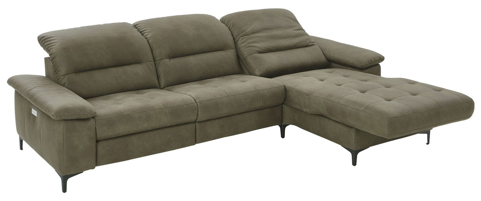 PURE COMFORT 820: Maximaler Komfort trifft modernes DesignDie Pure Home Comfort Longchairkombination PURE COMFORT 820 überzeugt nicht nur durch ihr zeitgemäßes Design, sondern auch durch ihre Funktionalität. Die Relaxfunktion sorgt für ein unvergleichliches Entspannungserlebnis, während die Belastbarkeit von bis zu 360 kg für Stabilität und Sicherheit steht. Die dezente Kombination aus olivefarbenem Stoff und schwarzen Metallfüßen verleiht diesem Möbelstück ein luxuriöses Flair. Dank der hohen Scheuertouren von 40000 bleibt der Stoff auch bei intensiver Nutzung in bestem Zustand. Warten Sie nicht länger und machen Sie Ihr Wohnzimmer zum stilvollen Rückzugsort!
