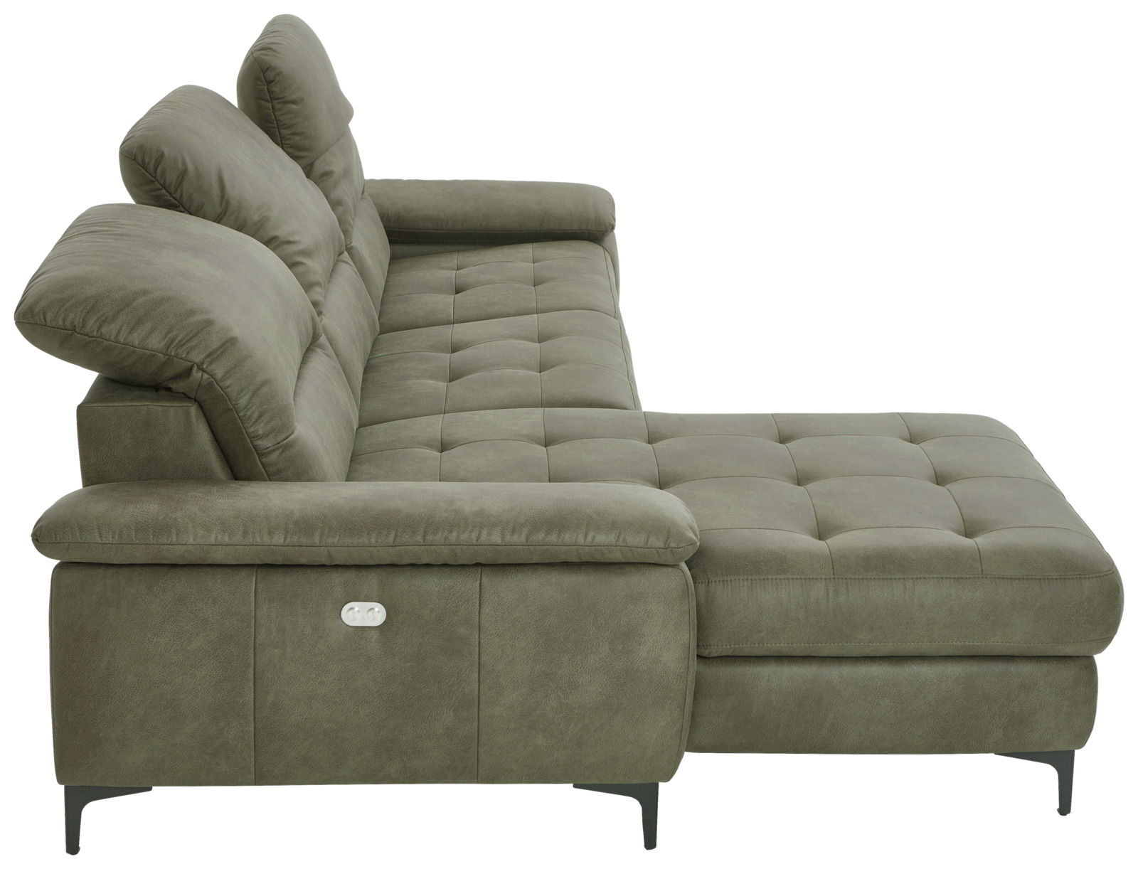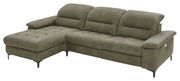 Erleben Sie die perfekte Verbindung aus zeitgemäßem Stil und herausragendem Komfort mit der Pure Home Comfort Longchairkombination PURE COMFORT 820. Dieses moderne Möbelstück besticht durch seine trendige Farbkombination aus olivefarbenem Stoff und schwarzen Metallfüßen. Der Bezug aus dem Stoff Savanna olive überzeugt durch seine Strapazierfähigkeit mit einer Abriebfestigkeit und Pillingbildung, die beide mit gut bewertet sind. Die angenehme Sitzhöhe von 47 cm und die Sitztiefe von 56 cm sorgen für ein bequemes Sitzerlebnis, während die Nosagunterfederung optimalen Halt bietet. Die manuell verstellbare Kopfstütze ermöglicht zusätzliche Entspannung.