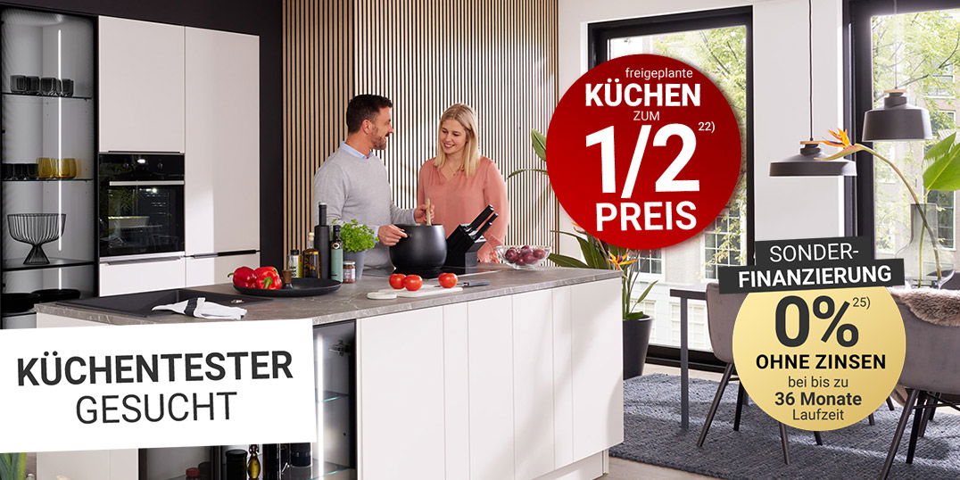 Bitte beachten Sie: Bei diesen Preisvorteilen müssen wir die Aktion auf 50 Küchentester pro Standort beschränken, da derartige Nachlässe im täglichen Verkauf nicht möglich sind.