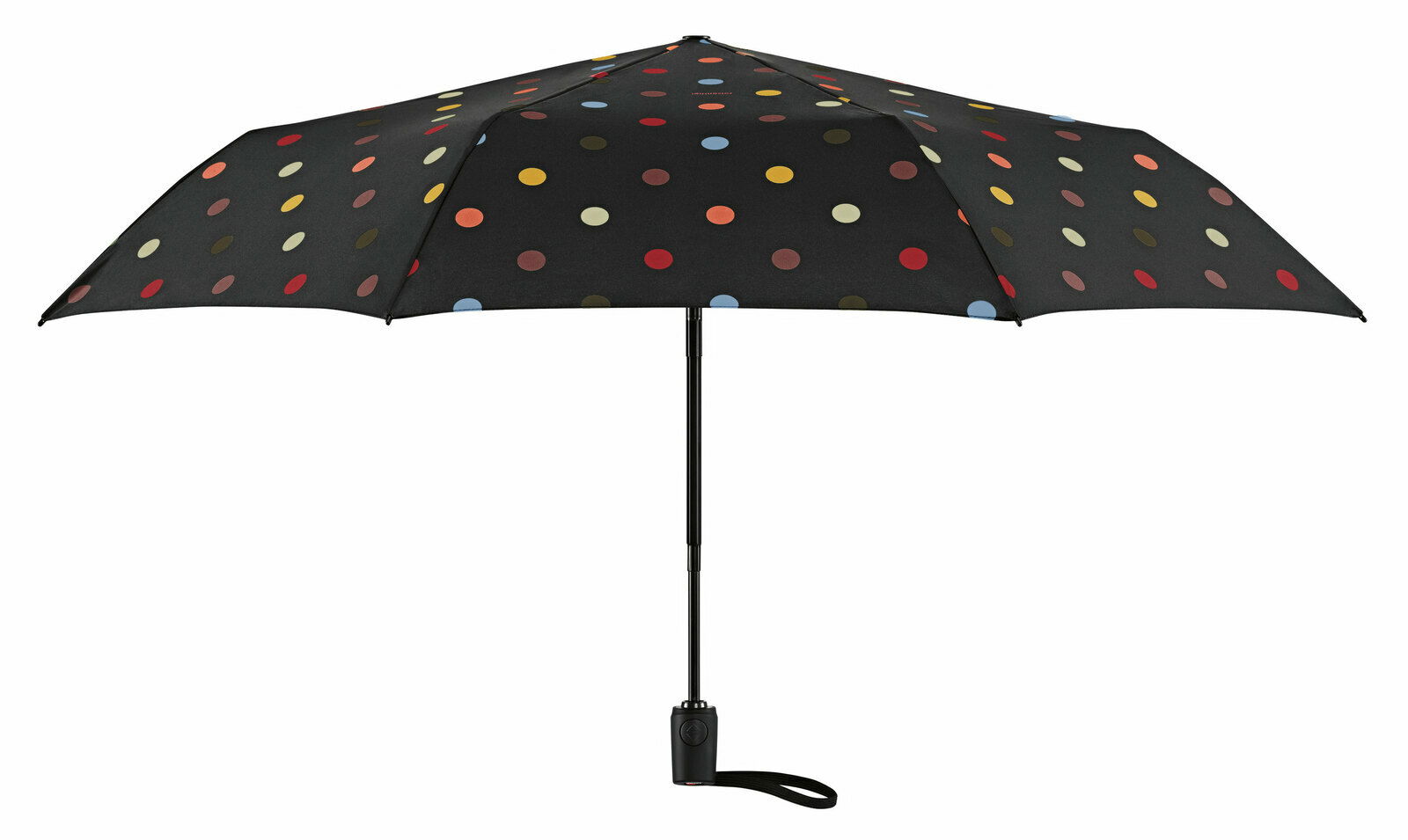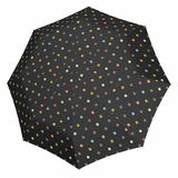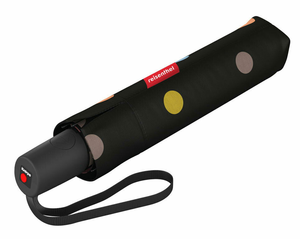 Der Reisenthel Umbrella Pocket "CLASSIC" sorgt für Farbe an regnerischen Tagen. Sein mit bunten Punkten versehener Hintergrund sticht unter jedem grauen Himmel hervor. Der B/H/T ca. 28 x 4,5 x 5 cm große Schirm mit inkludierter Schutzhülle begleitet Sie überallhin. Händisch öffnen Sie sein Schirmdach aus Polyester, das aus recycelten PET-Flaschen hergestellt wurde. Das wasserabweisende, schnelltrockende Material hält Böen bis zu 80 km/h umschlaggsicher stand. Stabil ist auch sein hochwertiges Gestänge aus Fiberglas und Stahl (0,35 kg). Nehmen Sie sich den Reisenthel Umbrella Pocket "CLASSIC" als unverzichtbaren Begleiter!