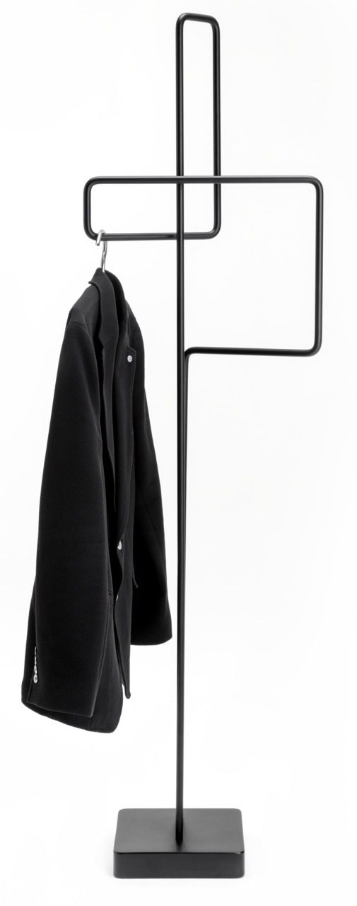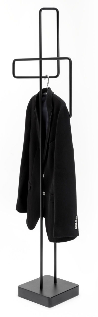 Der Rolf Benz Herrendiener 908 verkörpert modernes Design und Funktionalität in Perfektion. Mit einer Höhe von 160 cm, einer Breite von 43,3 cm und einer Tiefe von 25 cm bietet dieser stumme Diener ausreichend Platz, um Ihre Kleidung stilvoll und ordentlich zu präsentieren. Die verkehrsschwarz matte Feinstruktur-Pulverbeschichtung des Stahlgestells verleiht dem Herrendiener ein edles, zeitloses Aussehen. Die puristische Form und die hochwertige Verarbeitung machen ihn zu einem echten Blickfang in jedem Raum. Der Herrendiener steht stabil auf seinem schwarzen Fuss und fügt sich harmonisch in jedes moderne Wohnambiente ein.