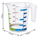 Im rotho Messbecher "DOMINO" können Sie ruckzuck Speisezutaten einteilen. Das transparente Kunststoff-Modell (0,13 kg, BPA-frei) ist mit farblich unterlegten Messskalen eingeteilt. Dabei vermisst das B/H/T ca. 10 x 13 x 16 cm große Behältnis Füllmengen bis zu 0,5 l.