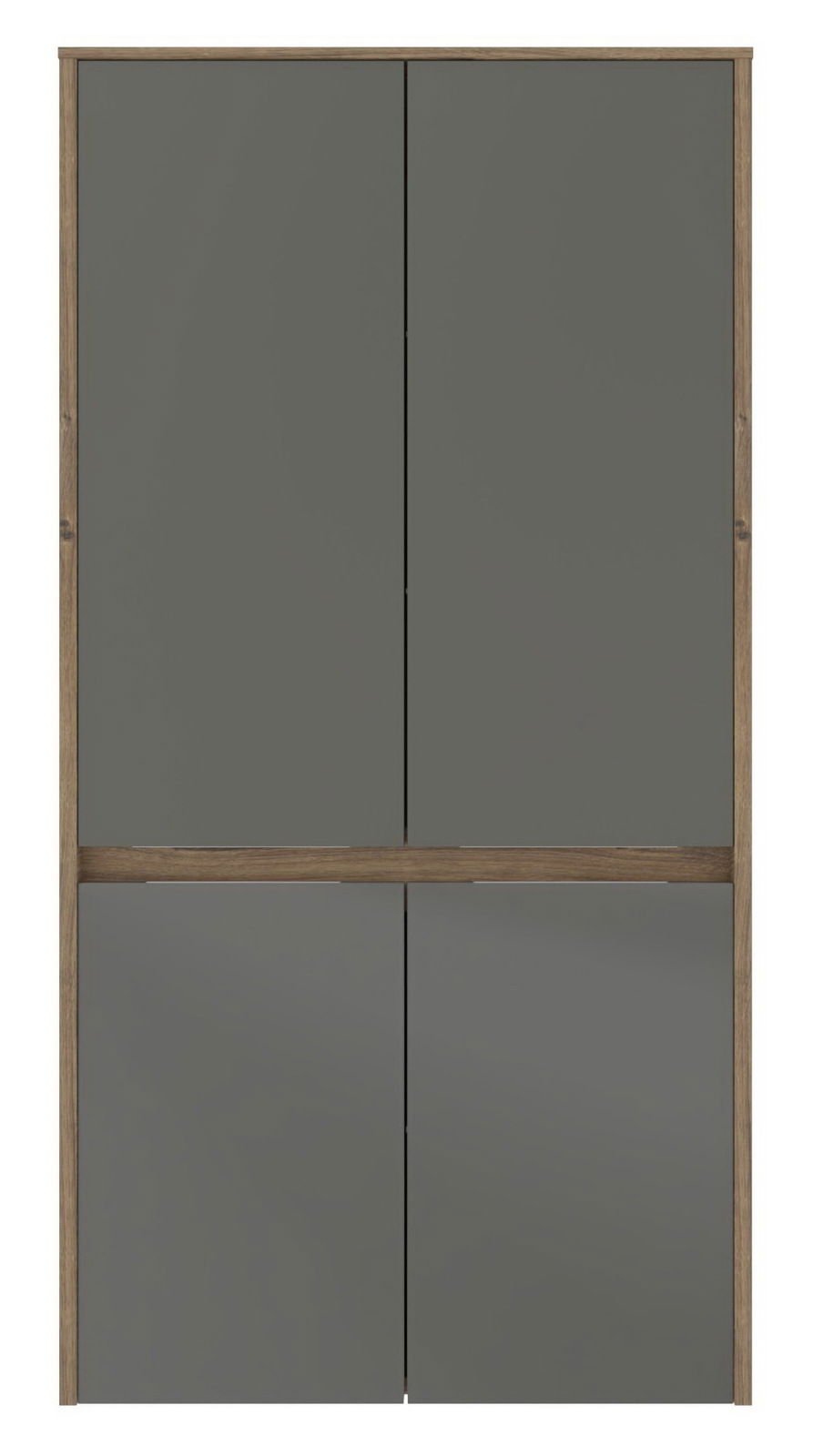 Der Sadena Midischrank LANDAU besticht durch sein modernes Design und die trendige Kombination aus grauen Fronten und einem Korpus in Eiche-Optik. Diese harmonische Farbgebung verleiht jedem Raum eine stilvolle und zeitgemäße Atmosphäre. Die praktische Griffleiste unterstreicht das minimalistische Erscheinungsbild, während die vier Drehtüren für ausreichend Stauraum sorgen. Hergestellt aus hochwertiger Holznachbildung, bietet dieser Schrank nicht nur optische Raffinesse, sondern auch Langlebigkeit. Die hängende Aufstellmöglichkeit macht ihn zudem zu einem platzsparenden Möbelstück, das sich ideal in jedes moderne Interieur einfügt und gleichzeitig für Ordnung sorgt.