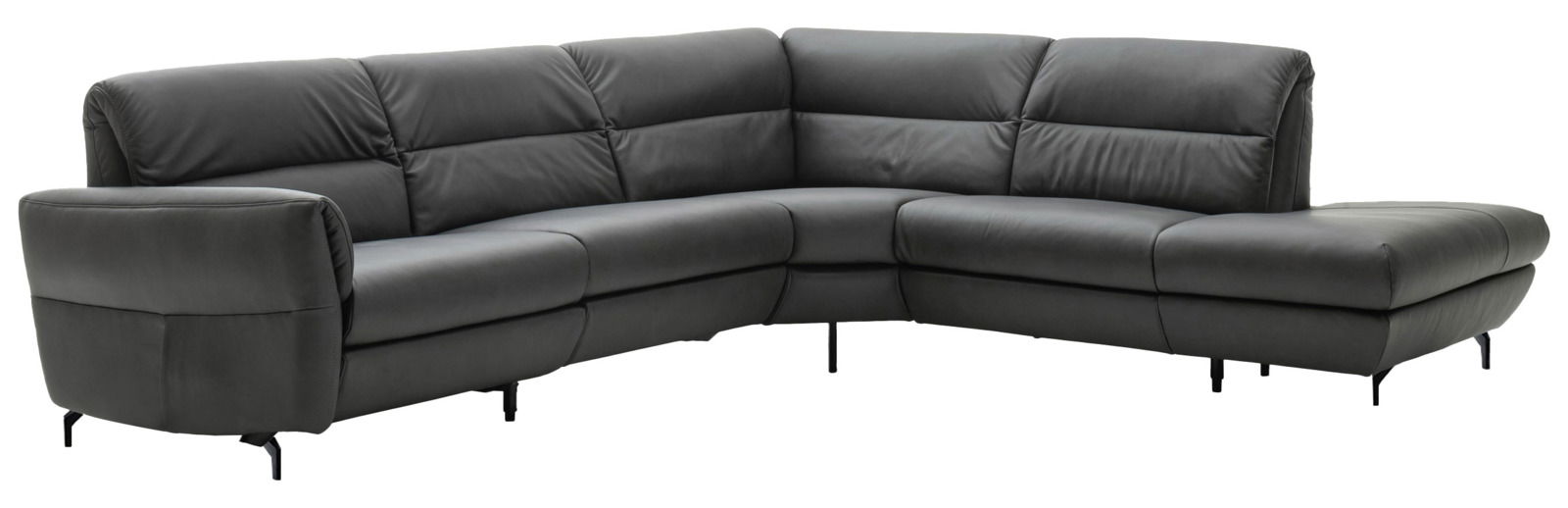 Das Schöner Wohnen Ecksofa SALERNO bringt modernen Stil und trendiges Design in Ihr Zuhause. Der Bezug aus hochwertigem Leder Evita in elegantem Anthrazit und der mit Vlies bezogene Rücken sorgen für höchsten Komfort und eine edle Optik. Die schwarzen Metallfüße unterstreichen das zeitgemäße Erscheinungsbild des Sofas. Mit einer Sitzhöhe von 46 cm und einer Sitztiefe von 57 cm bietet das Ecksofa hervorragenden Sitzkomfort und lädt zum Entspannen ein.