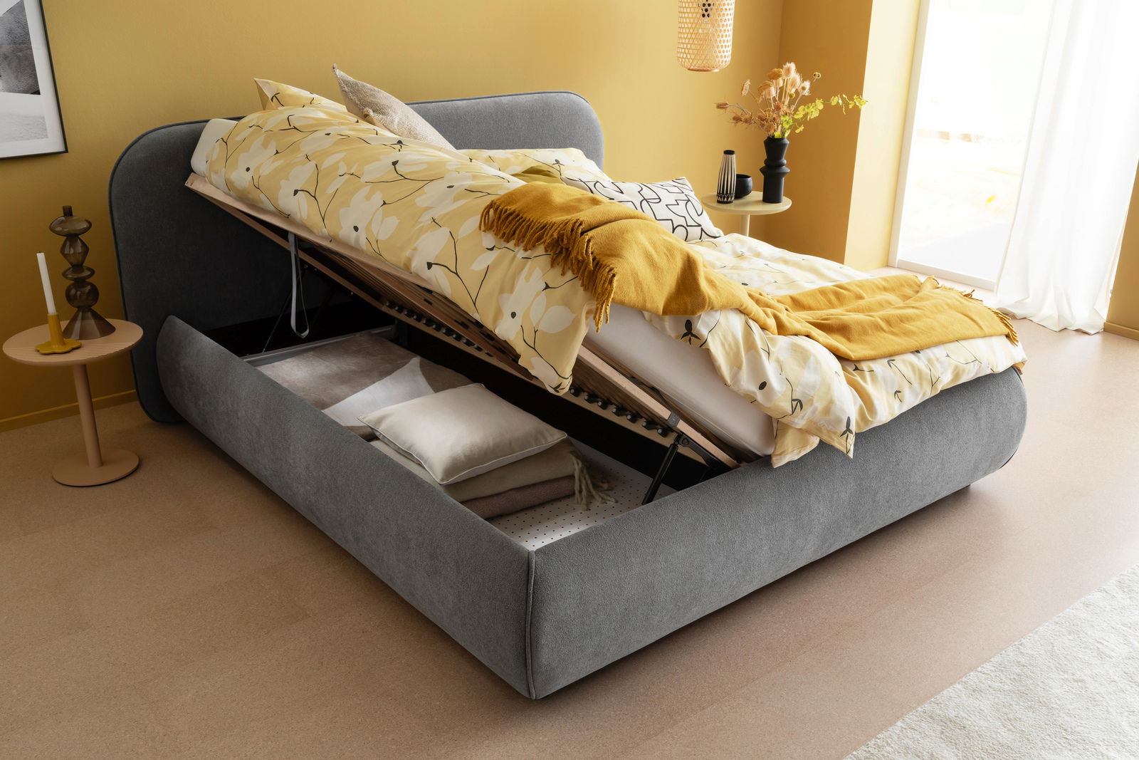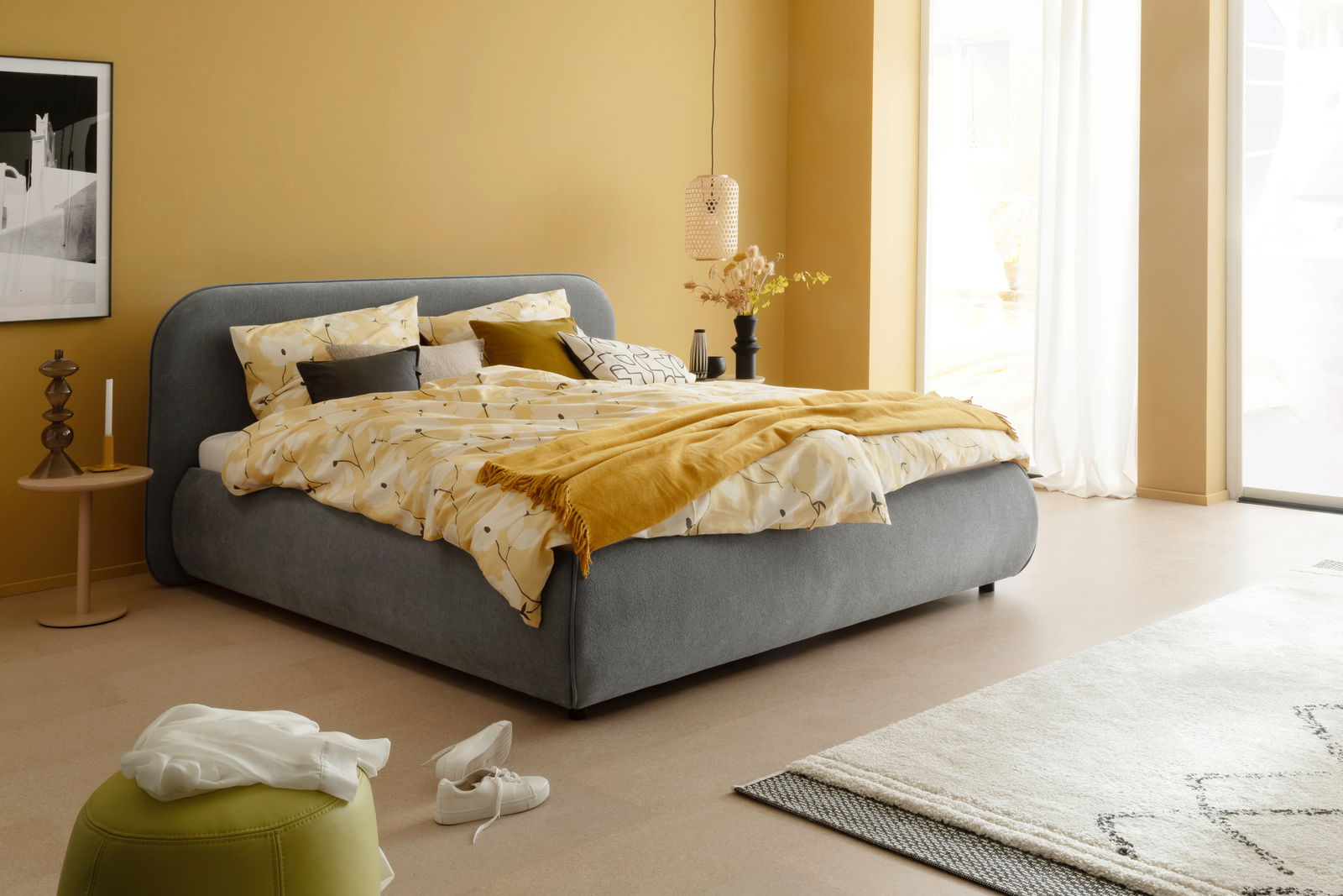 Erleben Sie eine neue Dimension des Schlafkomforts mit dem Schöner Wohnen Polsterbett LISSABON. Dieses traditionelle Posterbett verbindet klassisches Design mit praktischen Funktionen und ist die perfekte Ergänzung für Ihr Schlafzimmer. Der elegante graue Stoff vereint sich harmonisch mit den schwarzen Kunststofffüßen und verleiht Ihrem Raum eine zeitlose Eleganz. Das Bett bietet eine großzügige Liegefläche von 180 x 200 cm, ideal für erholsame Nächte. Im Lieferumfang enthalten sind ein hochwertiger Federholzrahmen und nützlicher Stauraum, der Ihnen zusätzlichen Platz für Bettwäsche und andere Gegenstände bietet. Bitte beachten Sie, dass die Matratze und Dekoration nicht inbegriffen sind.