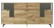 Dieses stehend aufstellbare Sideboard kombiniert Funktionalität mit ästhetischem Design. Das Hauptmaterial besteht aus hochwertigem Holzfurnier, das Langlebigkeit und Robustheit gewährleistet. Die vier Türen lassen sich bequem öffnen und bieten viel Platz für Ihre Gegenstände. Die zwei Schubladen sind ideal für kleinere Utensilien. Dank der integrierten Beleuchtung wird das Sideboard zum Blickfang in jedem Raum. Bereichern Sie Ihr Zuhause mit diesem stilvollen Möbelstück und bestellen Sie das Schöner Wohnen Sideboard ANDRA noch heute!