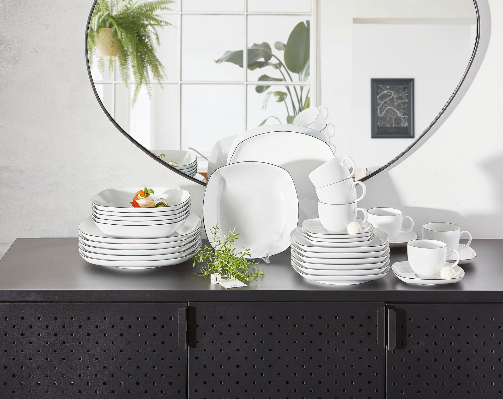 Formschönes Seltmann Weiden Kombiservice "LIDO BLACK LINE" 30-tlg. eckig aus Porzellan