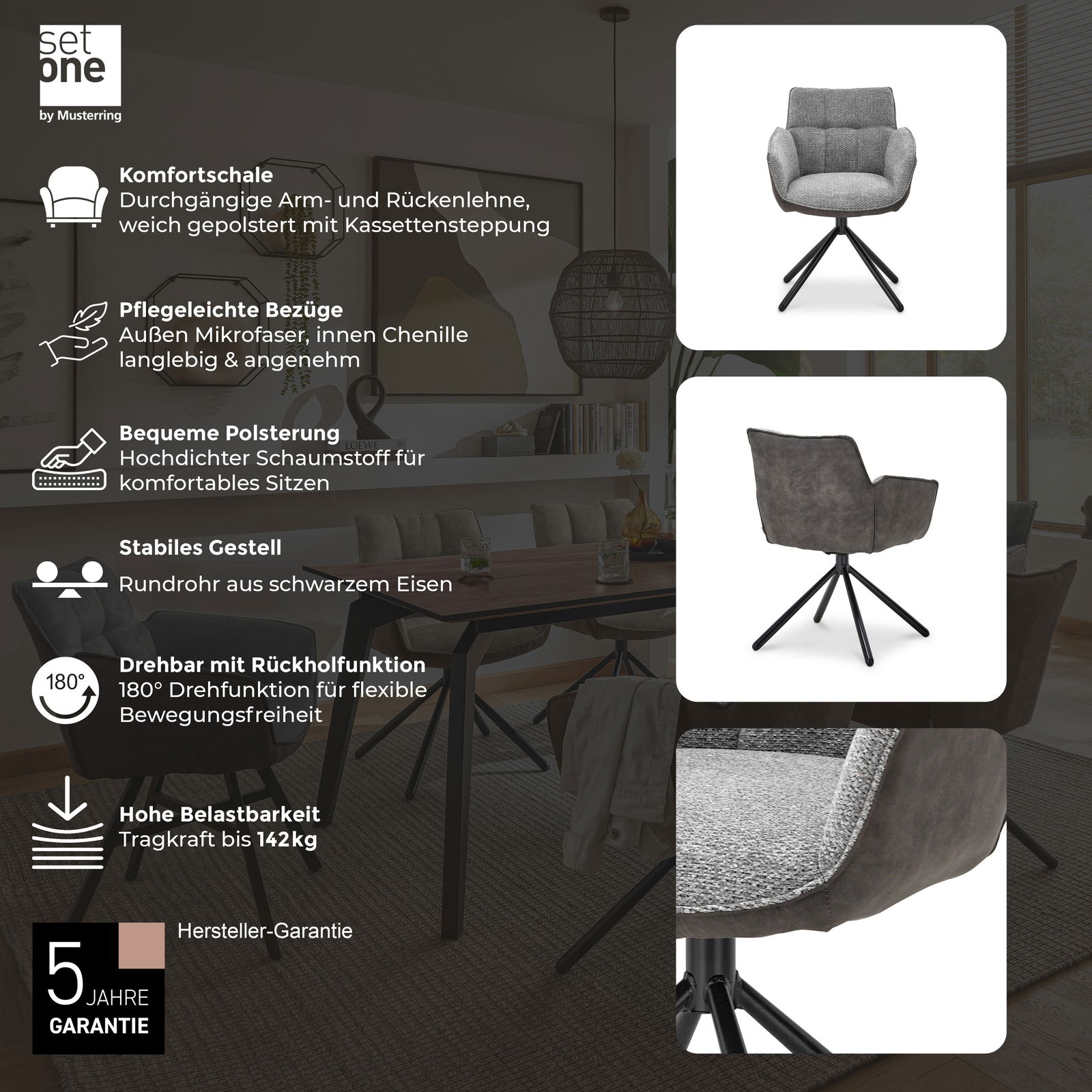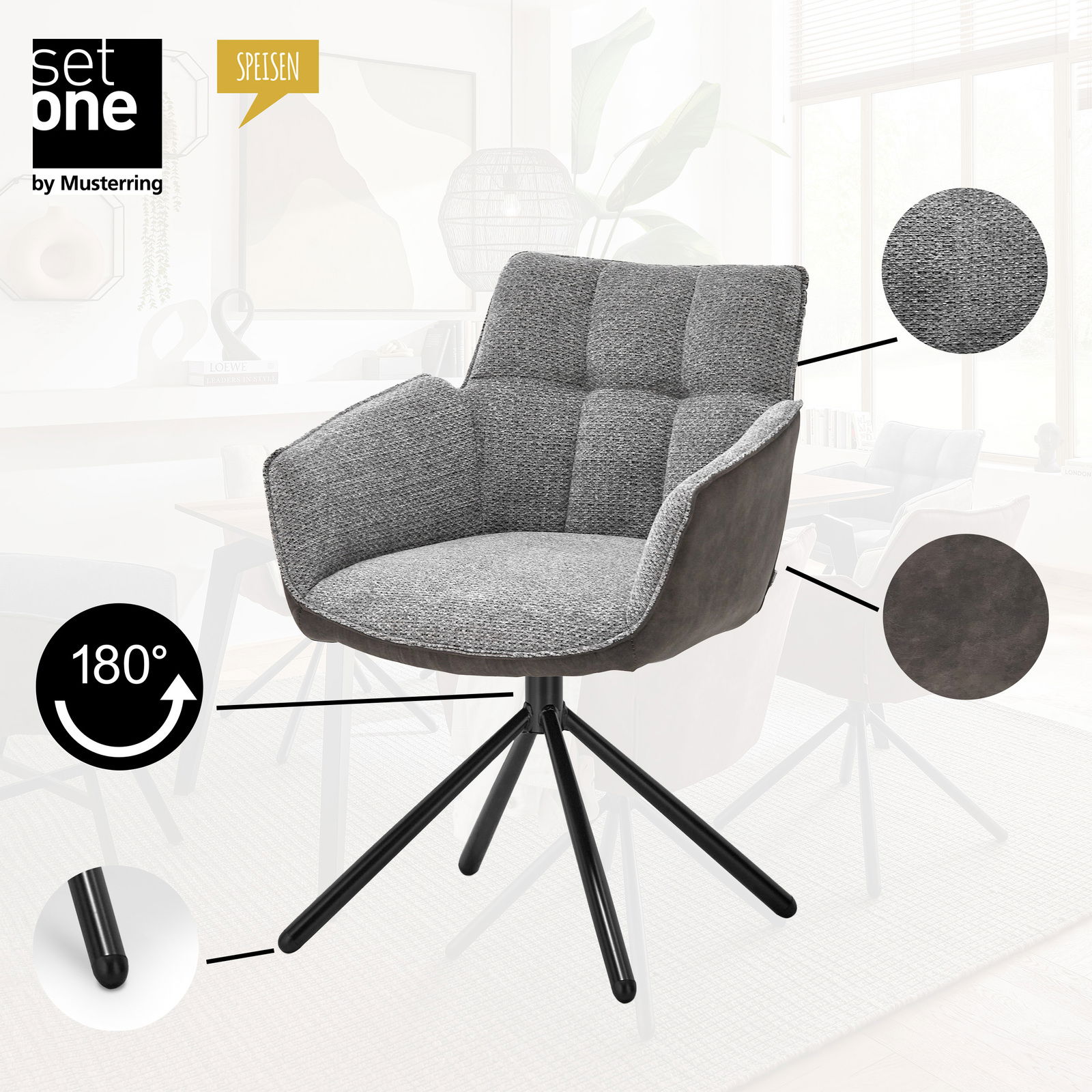 Set one by Musterring Armlehnstuhl FRISCO - Der moderne Drehstuhl in Grau