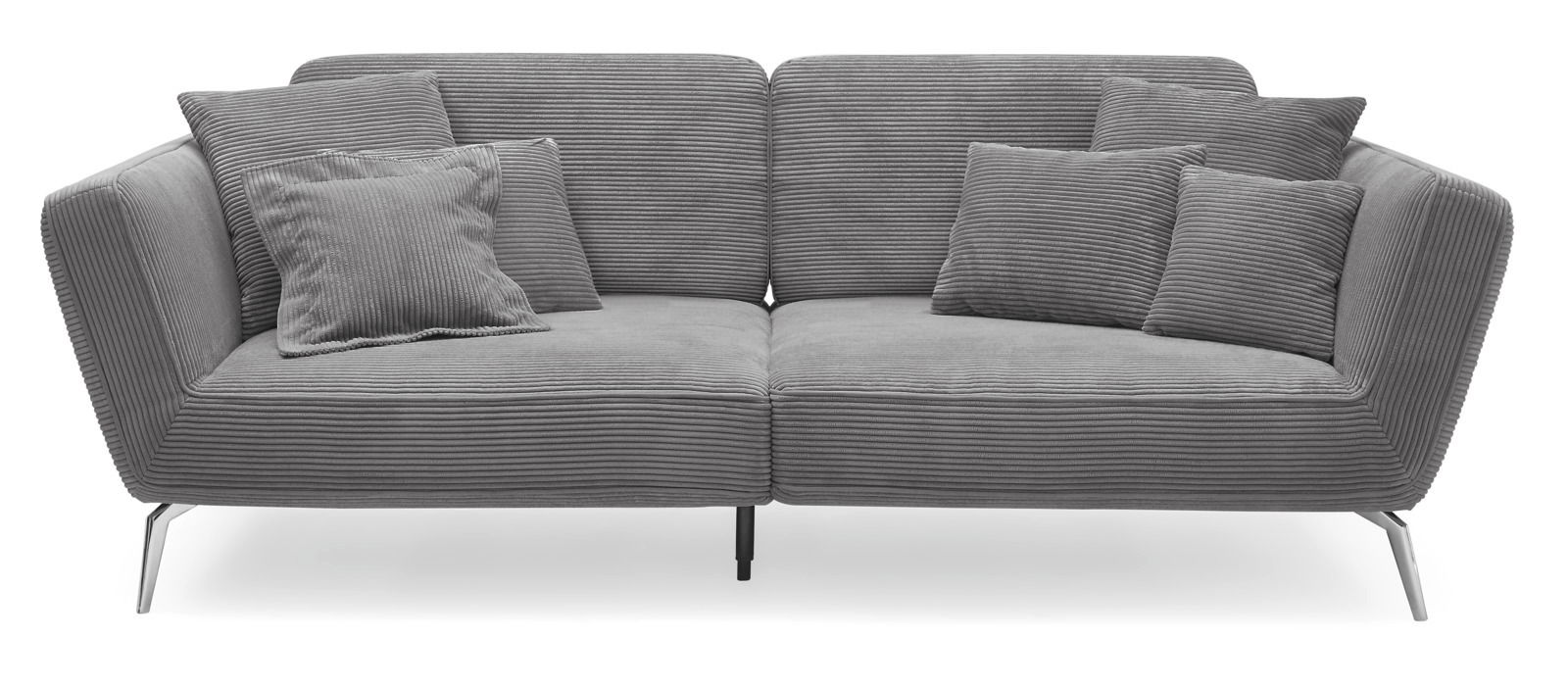 Erleben Sie ultimativen Komfort und modernen Stil mit dem Big Sofa 2-Sitzer SET ONE 4500 von Set one by Musterring. Dieses elegante Sofa besticht durch seinen stilvollen Cordbezug in Grau, kombiniert mit einer dezenten Biese in Miranda Grau. Die großzügige Sitzbreite von 210 cm und die komfortable Sitztiefe von 86 cm laden zum Entspannen ein, während die Wellenfedern und die hochwertige PU-Schaum-Polsterung optimalen Sitzkomfort gewährleisten. Die robusten Metallfüße in Chrom unterstreichen das moderne Design und bieten stabile Unterstützung. Perfekt für ein stilvolles Wohnzimmer, das Komfort und Design vereint.