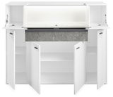 Erleben Sie modernes Design in Perfektion mit dem Highboard DELTONA von Set one by Musterring. Dieses stilvolle Möbelstück kombiniert eine klare Linienführung mit hochwertigen Materialien, um Ihrem Zuhause eine elegante Note zu verleihen. Die weiße, matte Oberfläche von Korpus, Front und sichtbaren Rückwänden harmoniert perfekt mit der Absetzung in Black Pearl-Sandstein-Dekor. Ein besonderer Blickfang ist die Klappe mit Glasausschnitt in Parsol-Bronze, die dem Highboard eine exklusive Optik verleiht. Mit vier Drehtüren, einer Schublade und Griffelementen bietet es nicht nur Stauraum, sondern auch eine ansprechende Ästhetik.